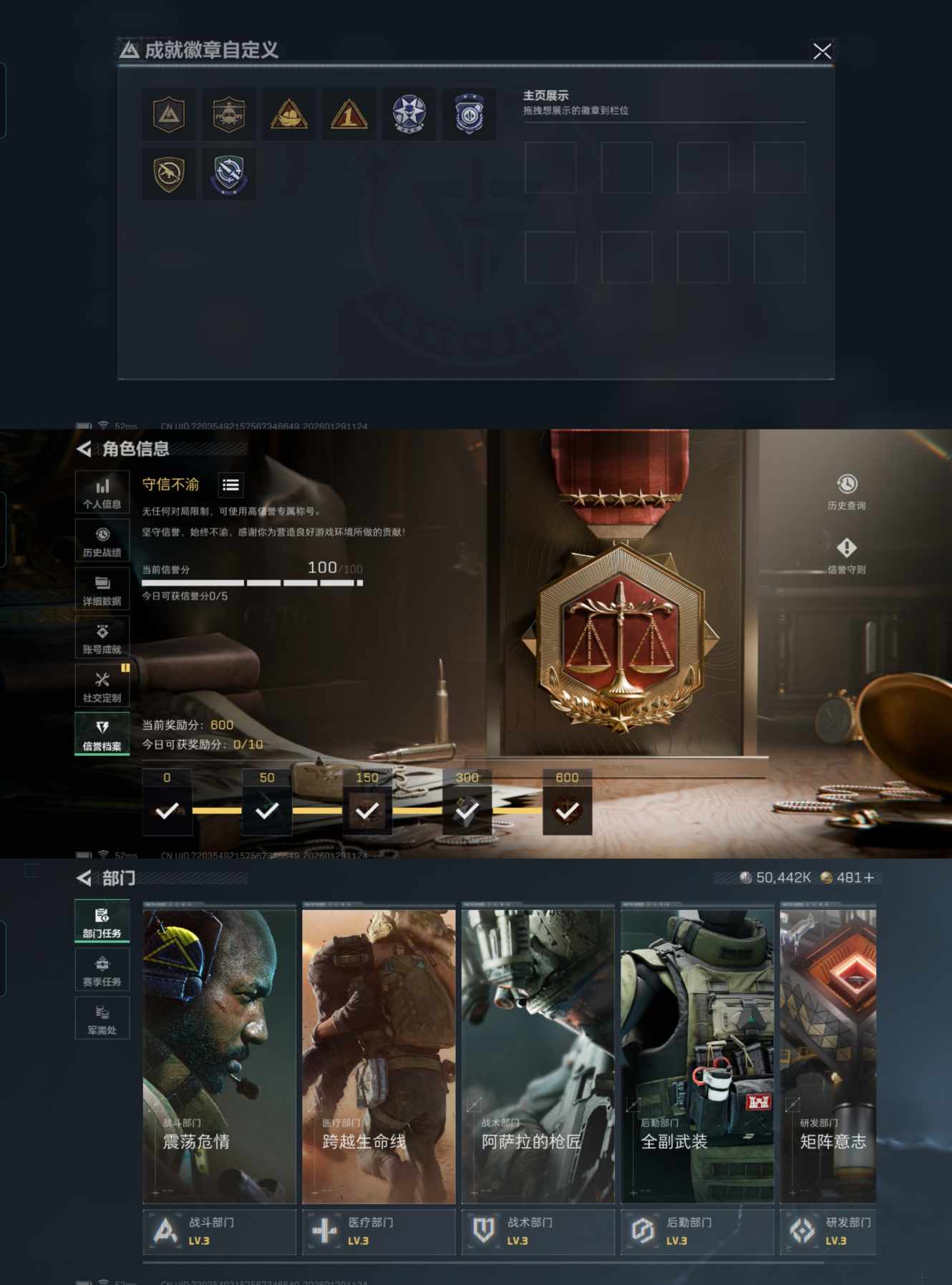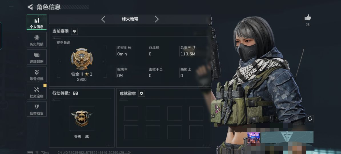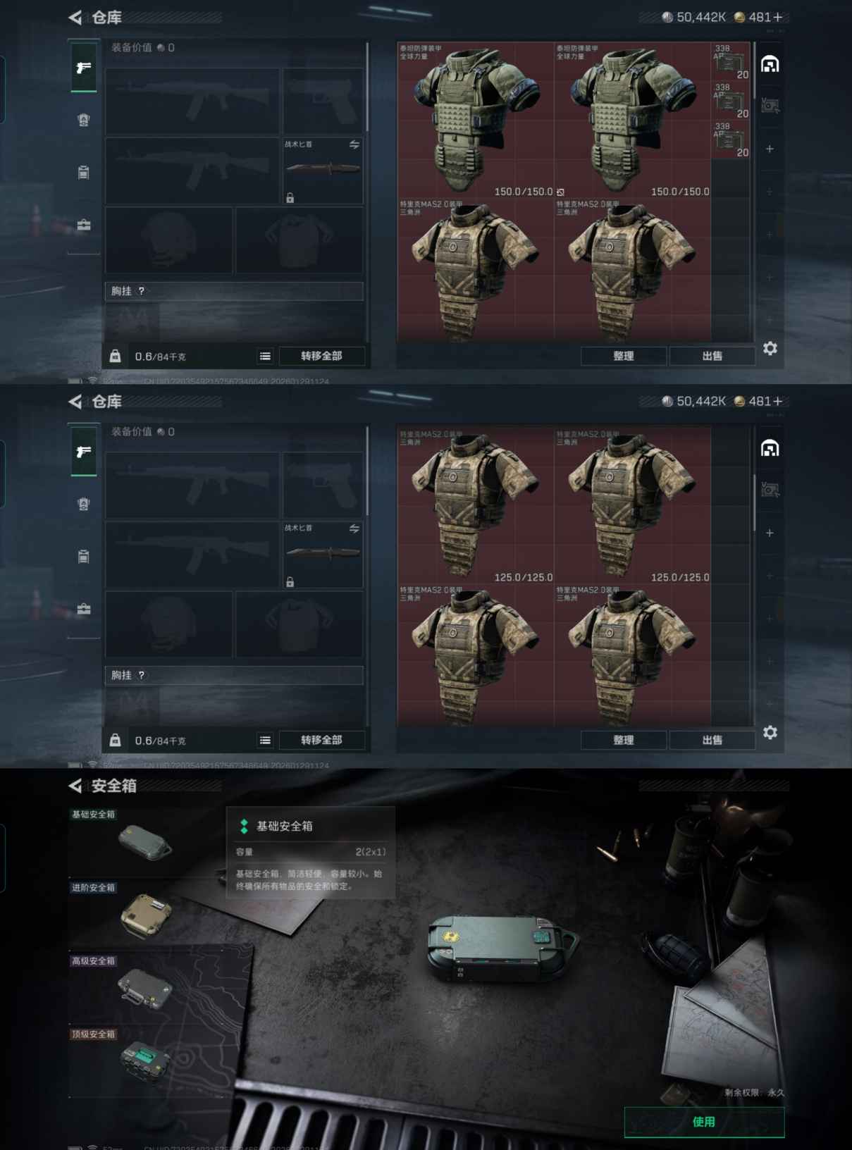 仓库价值113M 哈夫币50442K 60发AW子弹 干员3 金枪11