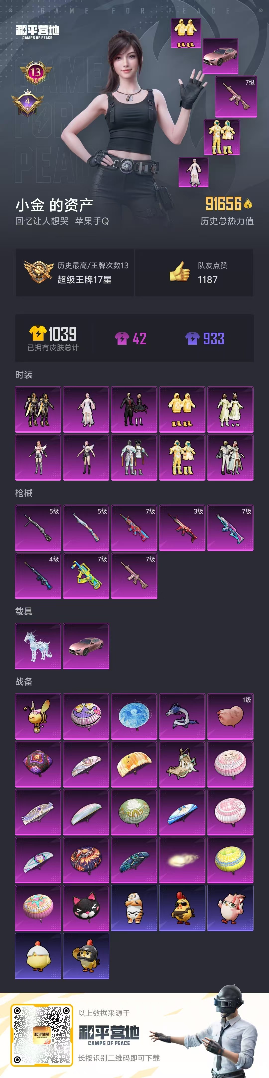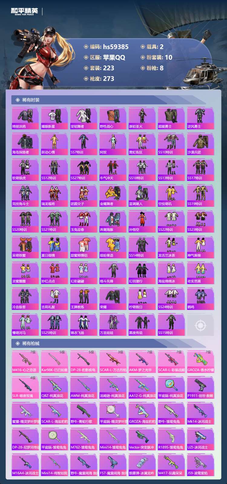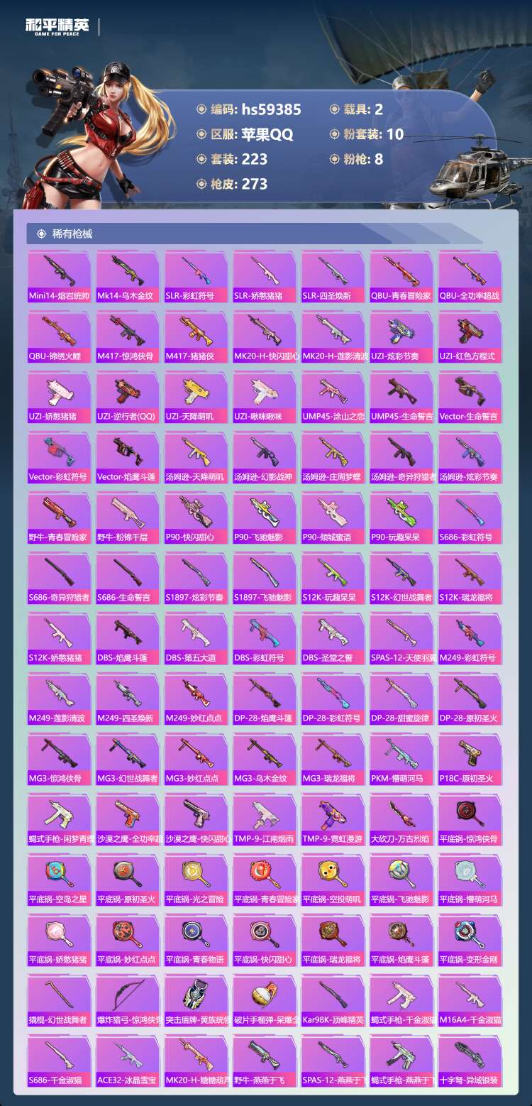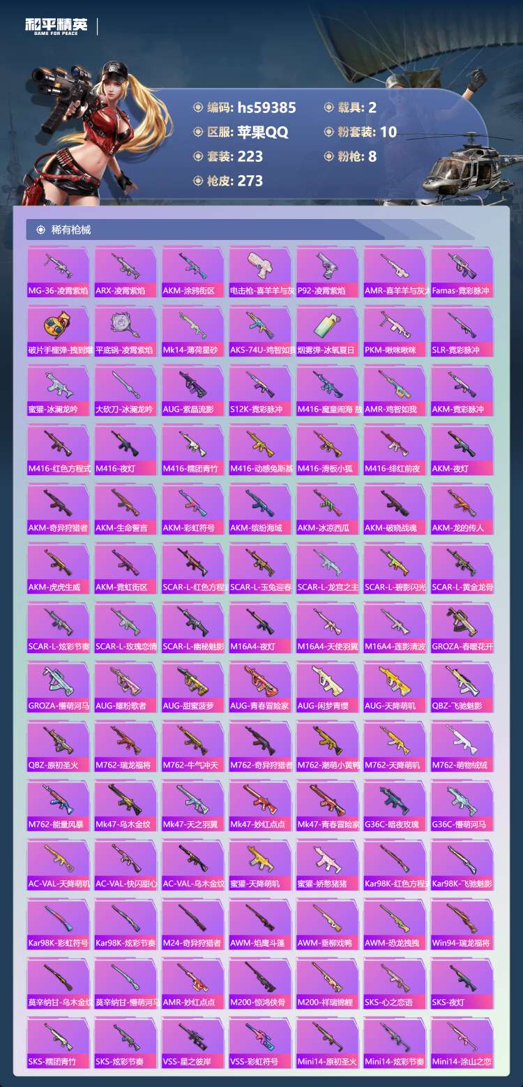 hs59385 苹果手Q-13王牌印记-10粉装-8特效枪-2载具-91656热力值-223套装-2