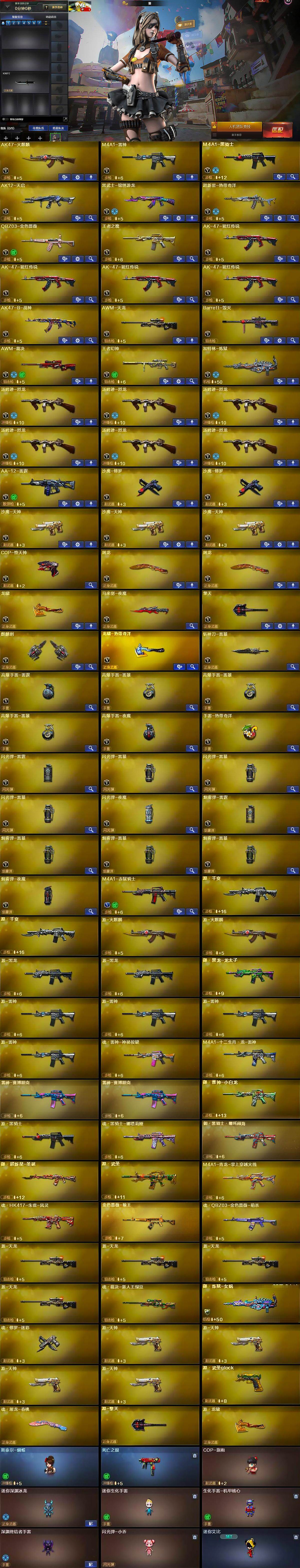【热门武器】:QBZ03-金色蔷薇,死亡之眼,M4A1-黑骑士,汤姆逊-烈龙*6,加特林-炼狱,斯泰尔-蝴蝶,COP-堕天神,沙鹰-修罗*2
