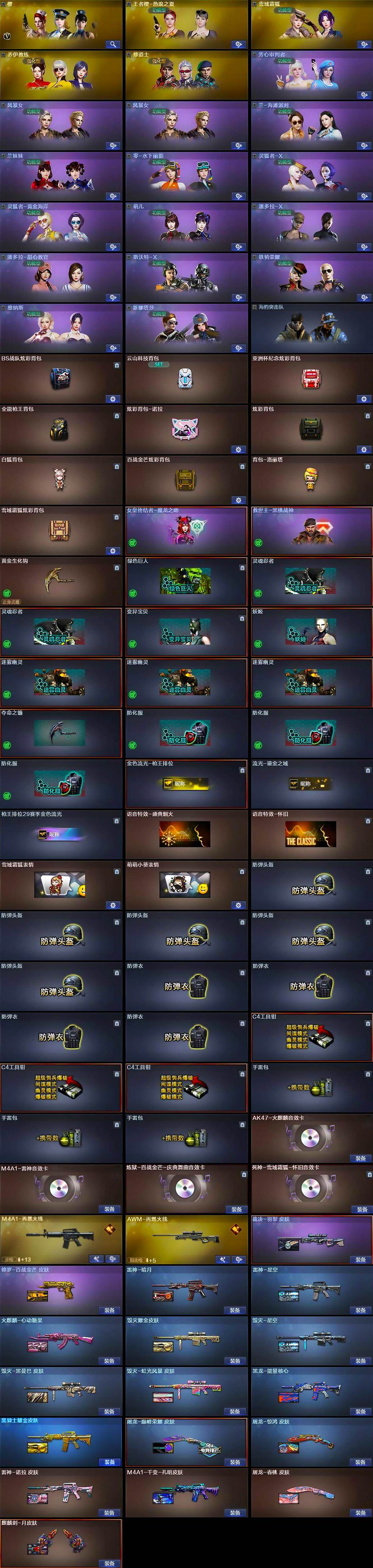 【音效卡】:AK47-火麒麟音效卡,M4A1-雷神音效卡,炼狱-百战金芒-庆典舞曲音效卡,死神-雪域霜狐-怀旧音效卡