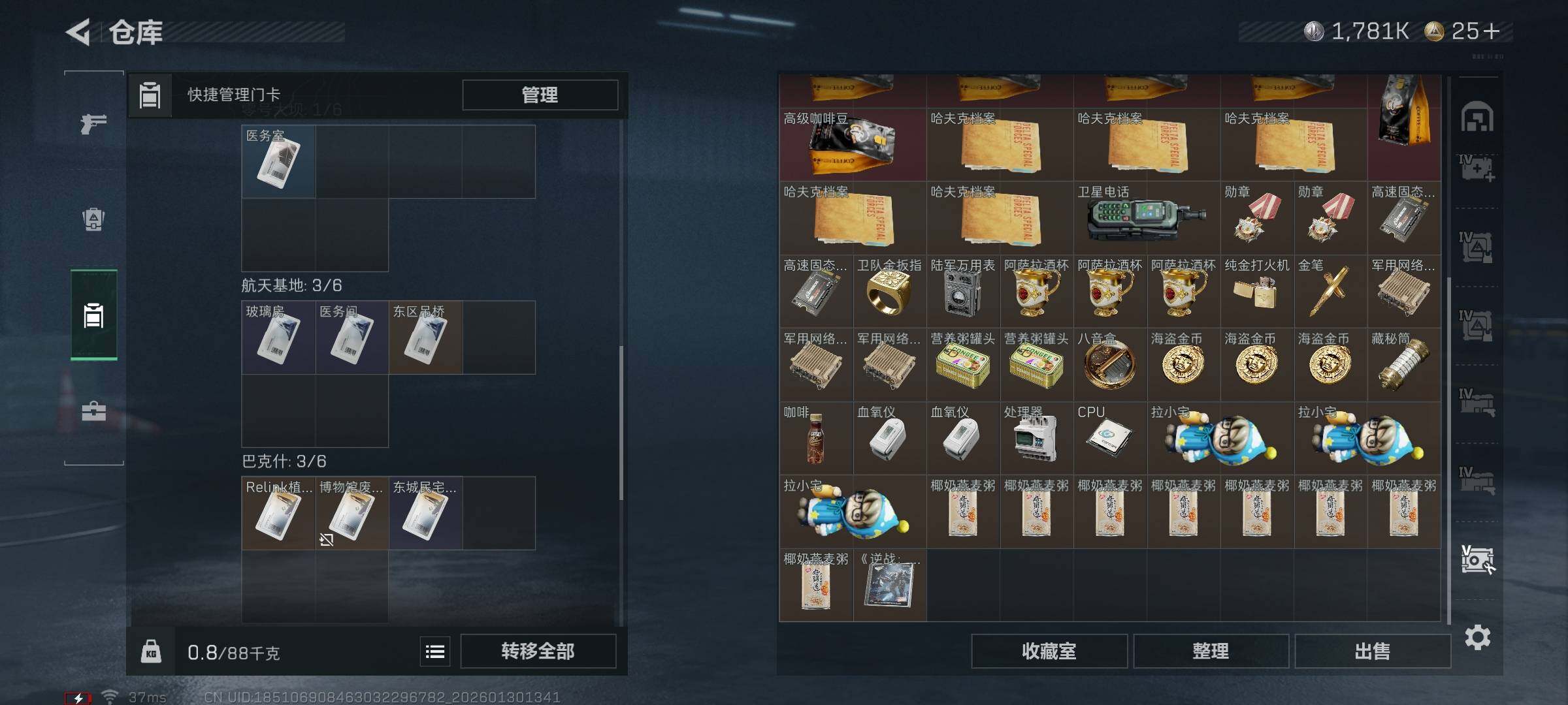 总资产(M):171M/哈夫币(K):1781K