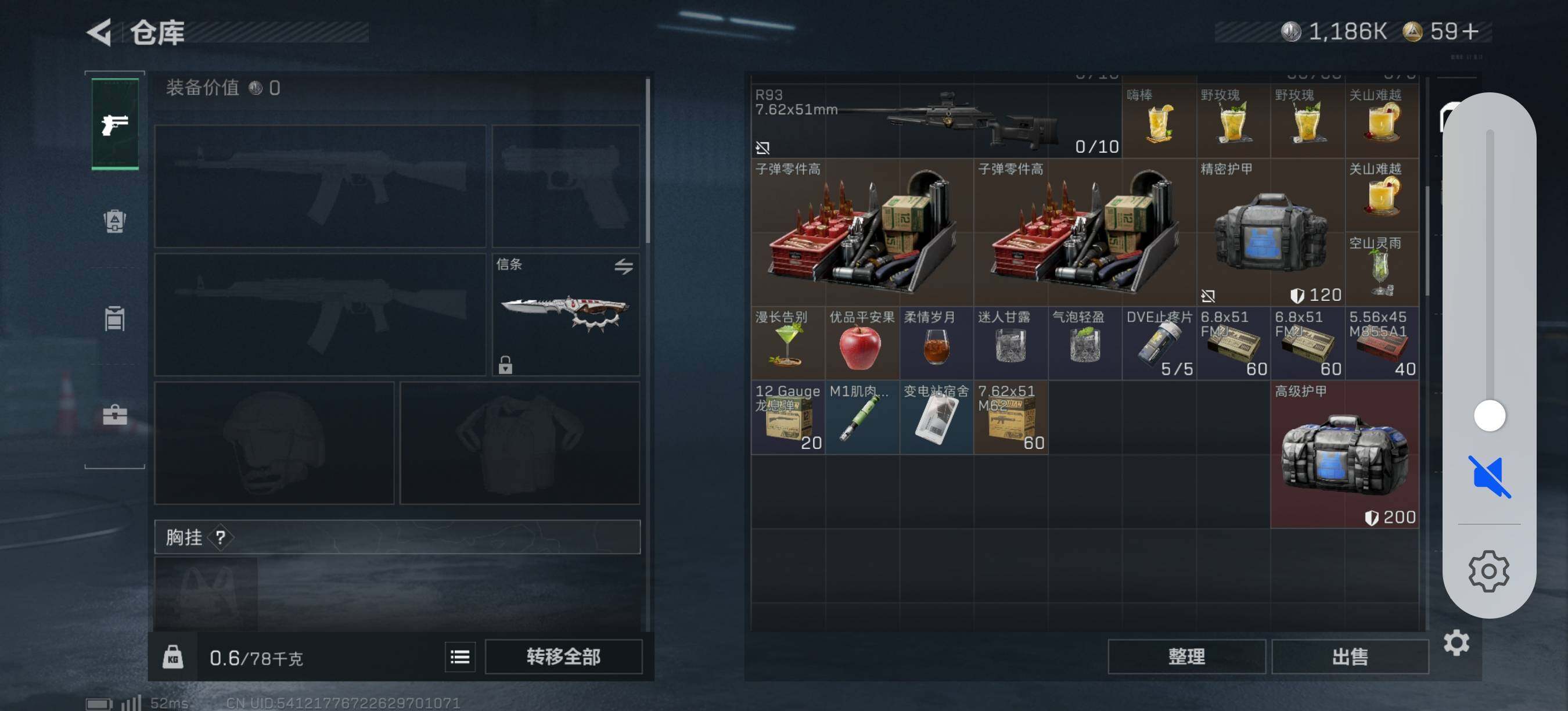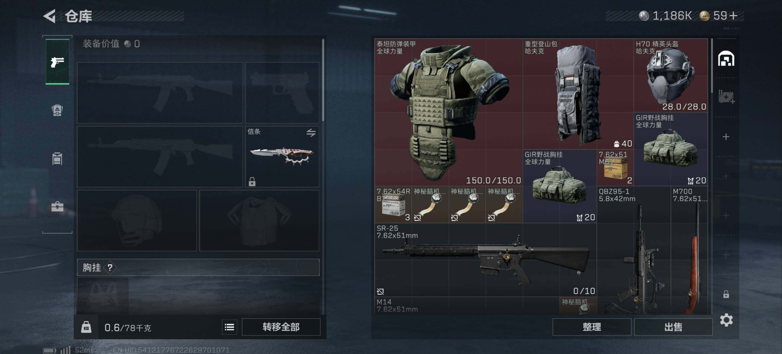 【SJZX1285】总资产(M):18M/哈夫币(K):1186K/哈夫币(K):1186K/传说枪皮数:10/全面战场等级:20_段位:上等兵/烽火地带等级:60_段位:黑鹰/红狼-蚀金玫瑰/红狼-电锯惊魂/露娜-金牌射手/近战-信条/近战-黑鹰/M4A1突击步枪-蚀金玫瑰/SG552突击步枪-运动员/SCAR-H战斗步枪-启航/腾龙突击步枪-死神玫瑰/KC17突击步枪-电锯惊魂/P90冲锋枪-信条/M250通用机枪-骑士之心/SR-25射手步枪-信条/杠杆式步枪-纵横/R93狙击步枪-维什戴