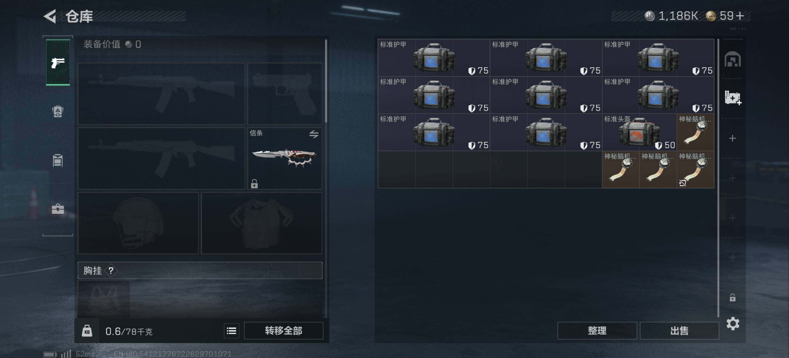 SJZX1285总资产(M):18M/哈夫币(K):1186K
