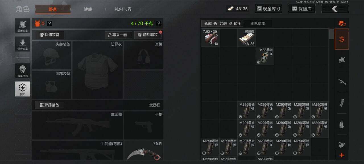 仓库价值(百万):0.4/柯恩币:48135/下弦月/旗帜AEK/战术大师AN94