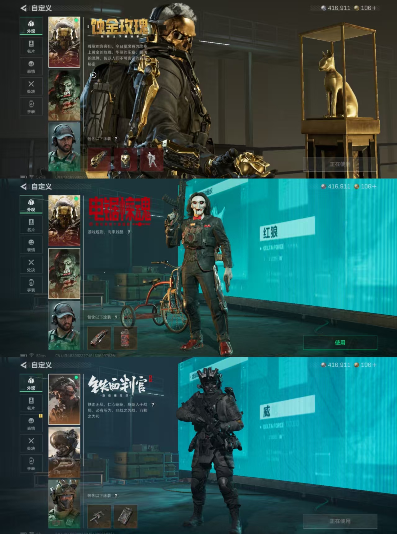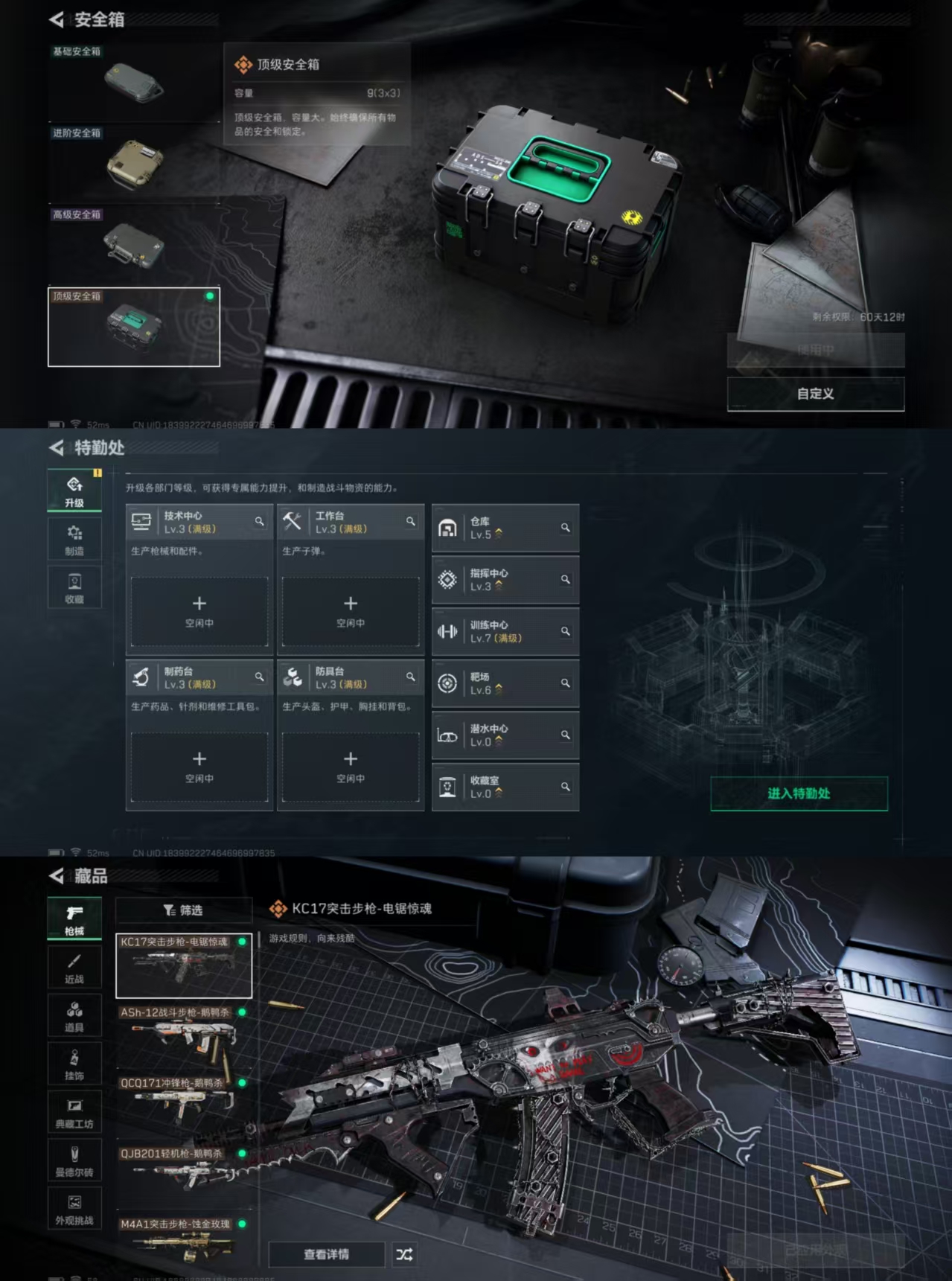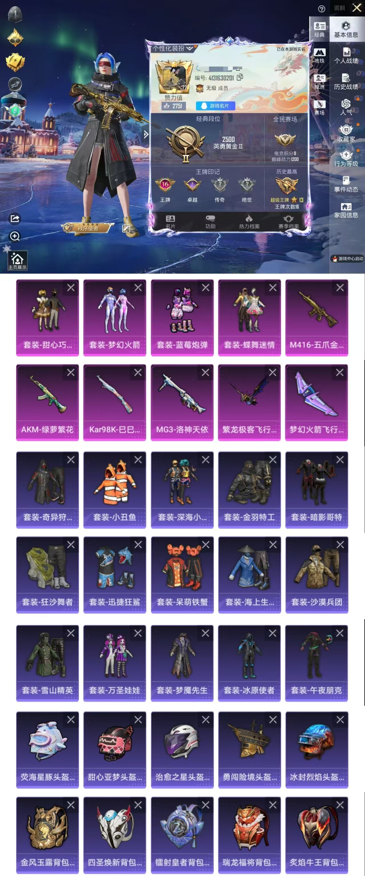 DSJZ1340【店铺推荐性价比高!7干员皮肤 北极星捆绑包 赛季9格保险箱连体和平4粉4特 梦幻火箭 满级五爪王者196p5传说】三端互通Q区-总资产18M-哈夫币416.911-烽火地带等级60-烽火地带段位-黑鹰【干员皮肤】 红狼-蚀金玫瑰 威龙-壮志凌云 威龙-铁面判官 送葬人-无题密令 牧羊人-街头之王 深蓝-不破誓约 红狼-电锯惊魂【刀皮】北极星 黑鹰【枪皮】 KC17突击步枪-电锯惊魂 AWM狙击步枪-捞点薯条 93R-捞点薯条 复合弓-黑天际线 CAR-15突击步枪-阿米娅 72