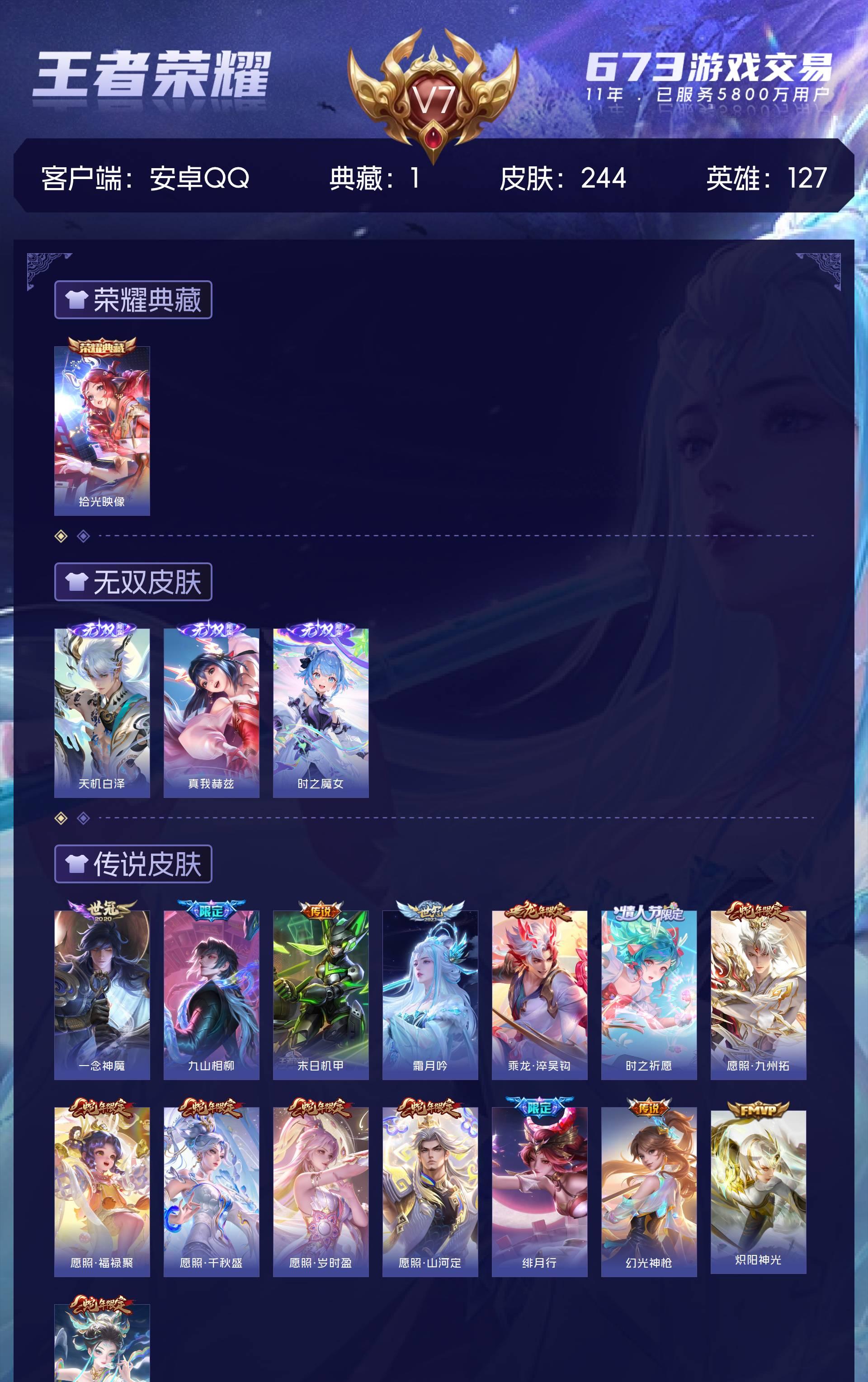 V7 皮肤244 英雄127 永恒钻石 荣耀典藏1 无双皮肤3 传说15 其他皮肤229
