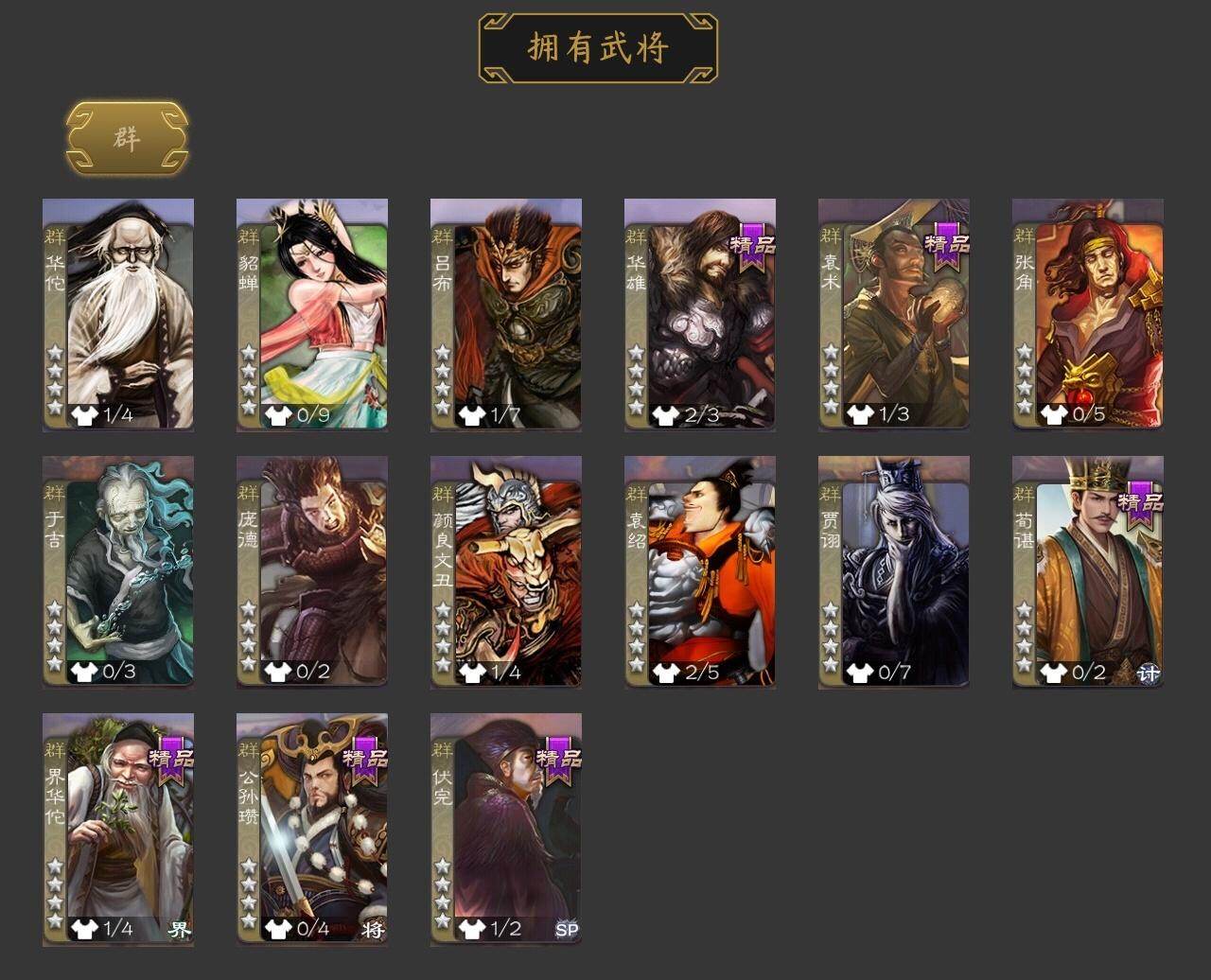 神孙策,王元姬,诸葛诞,曹冲,界王异,界曹操,司马朗,崔琰,夏侯霸,界马超,SP徐庶,吴懿,界张嶷,甘夫人,势陈祗,韩当,界甘宁,界陆逊,吕范,伏完,华雄,袁术,界华佗,公孙瓒,荀谌,王元姬-