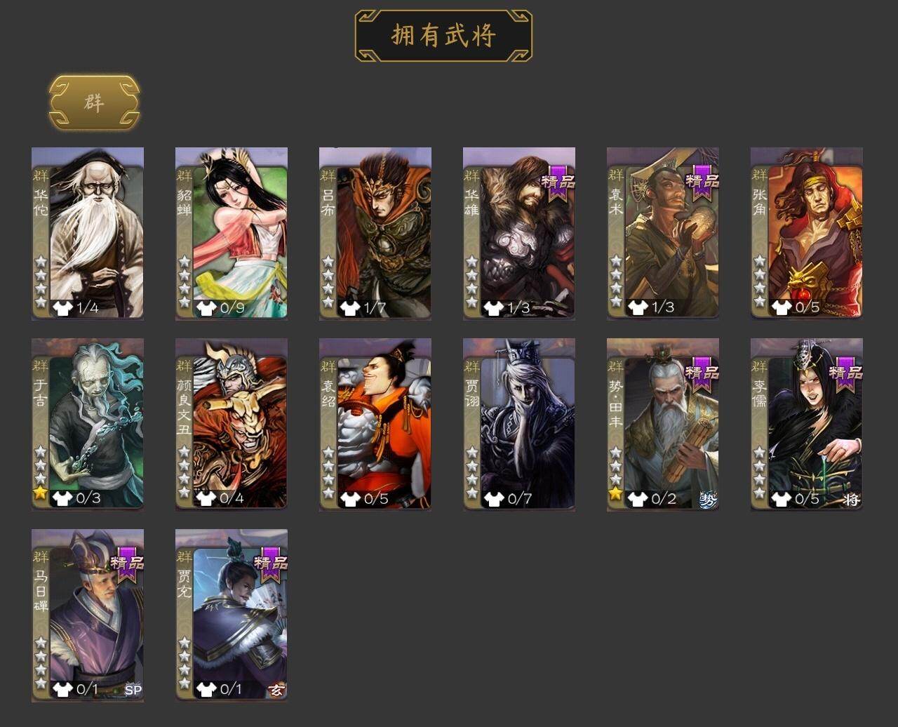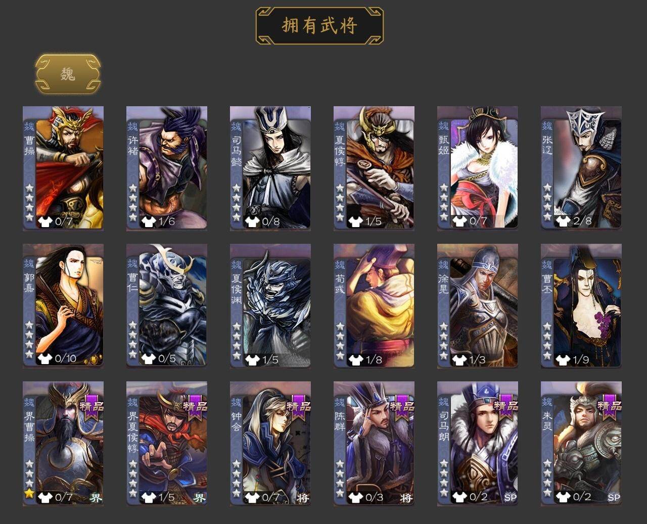 花鬘,势太史慈,神吕蒙,朱灵,钟会,界曹操,界夏侯惇,陈群,司马朗,夏侯霸,廖化,关平,界刘备,周仓,诸葛瑾,韩当,界黄盖,界周瑜,界陆逊,界朱治,李儒,华雄,袁术,马日磾,贾充,势田丰,孙