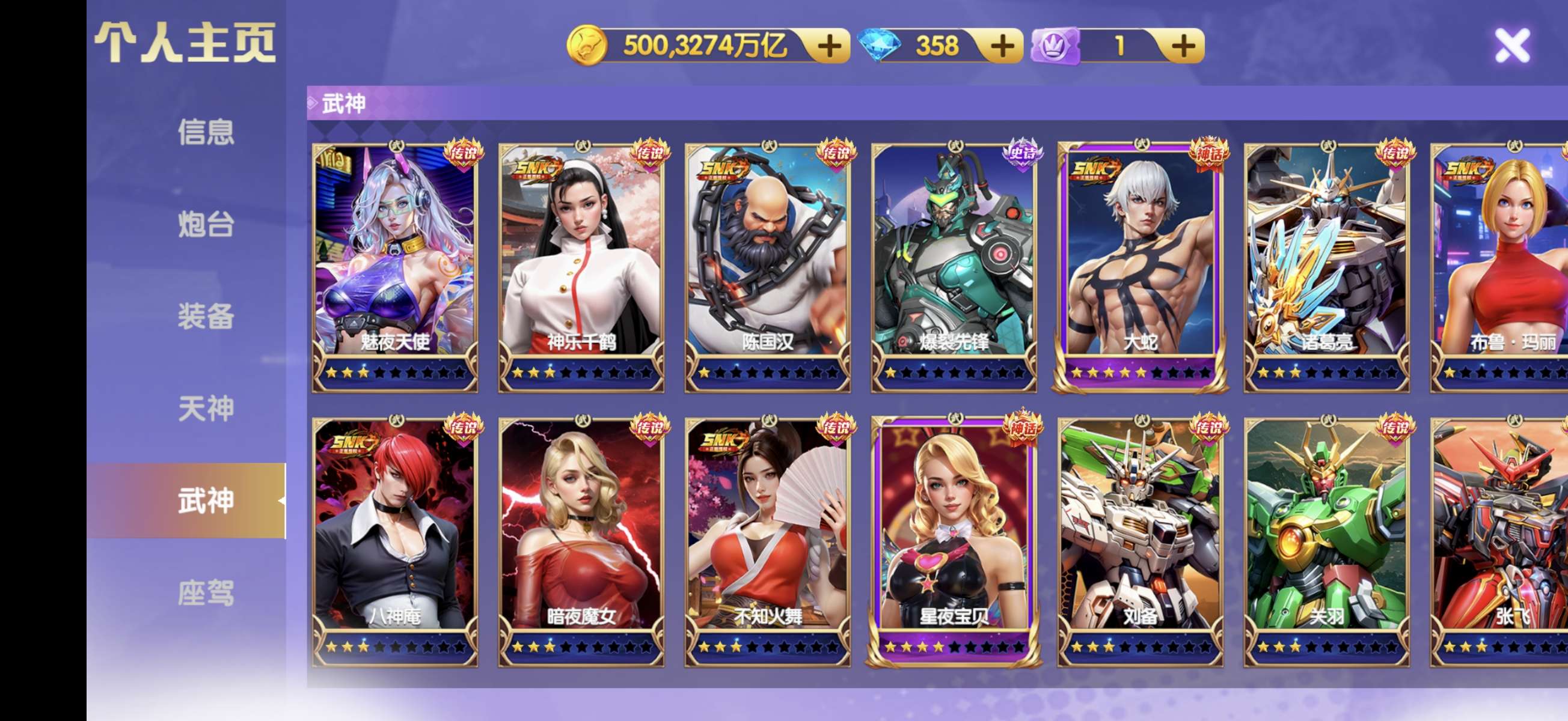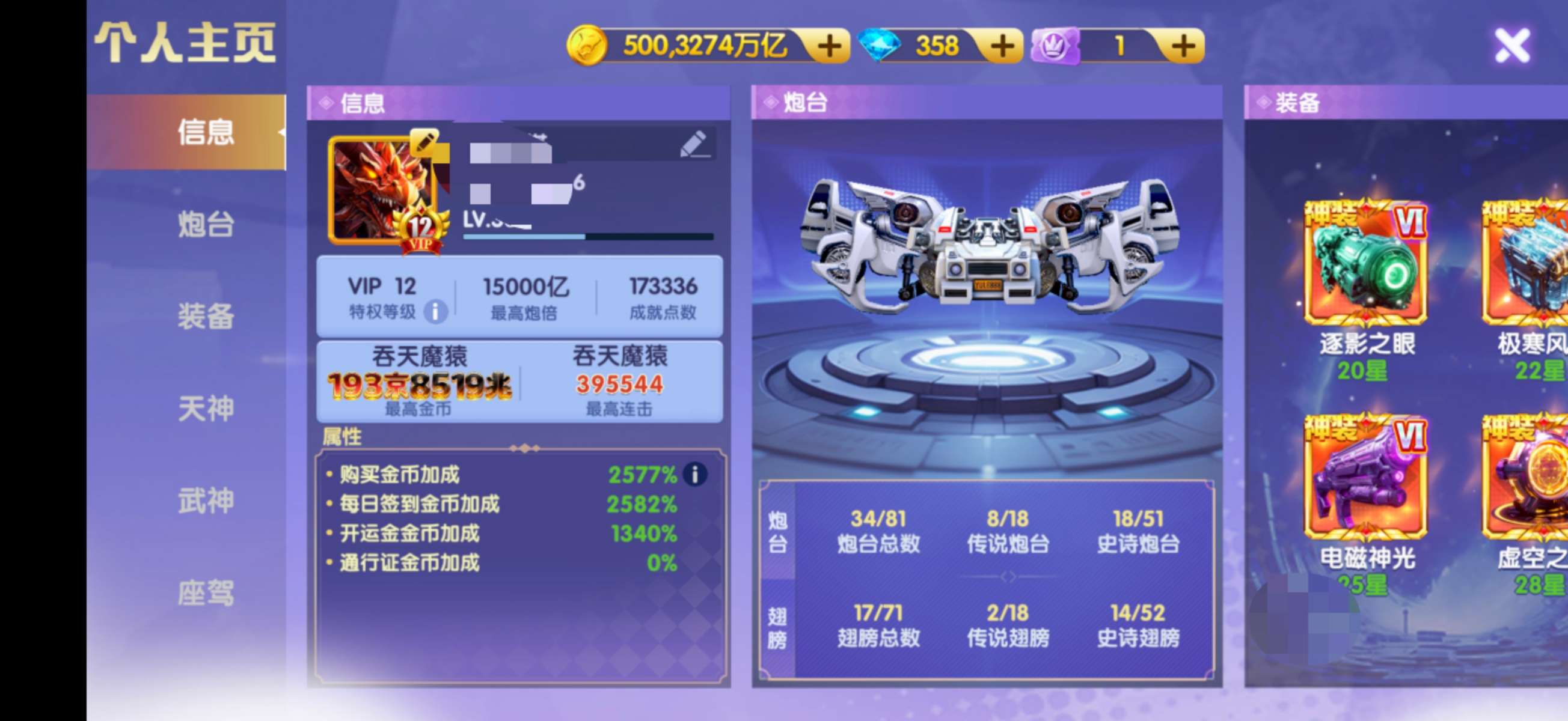 v12 500京 2700斩 神力7800 16武神 羁绊+37座驾4级洪荒5000多炸弹不要代售