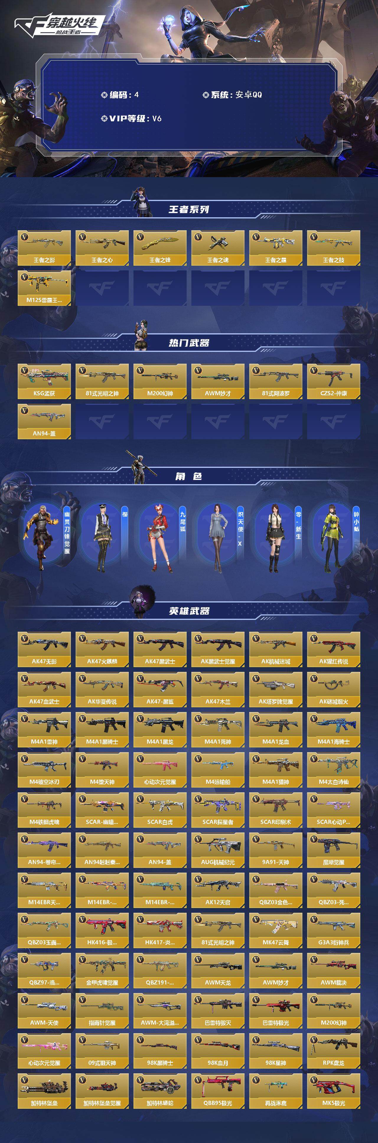 【店主推荐捡漏号!可直接换绑】6英雄角色数-263英雄武器数-7王者武器/8热
