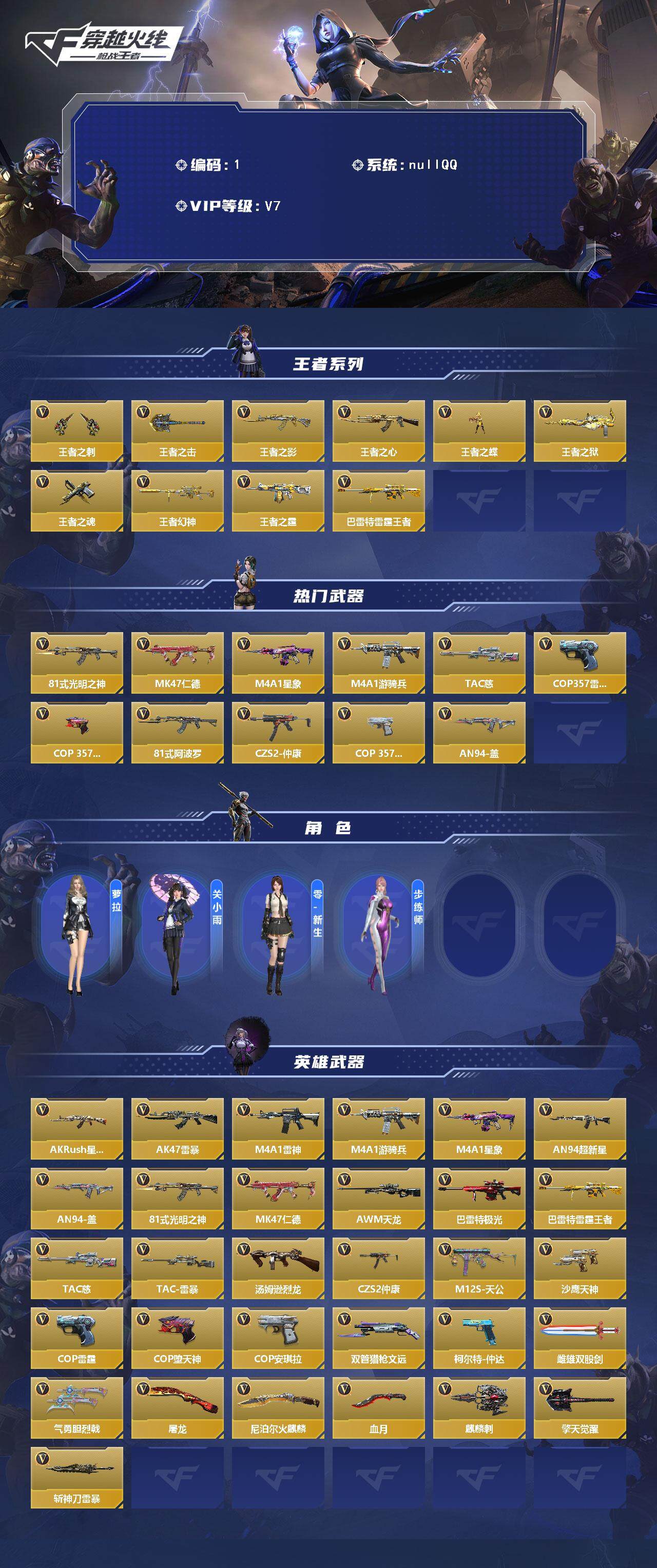 【热门武器】:81式-光明之神*2,MK47-仁德,M4A1-星象,M4A1-游骑兵,TAC-慈,COP 357-雷霆,COP 357-堕天神,81式-阿波罗,CZS2-仲康,COP 357-安琪拉,AN94-