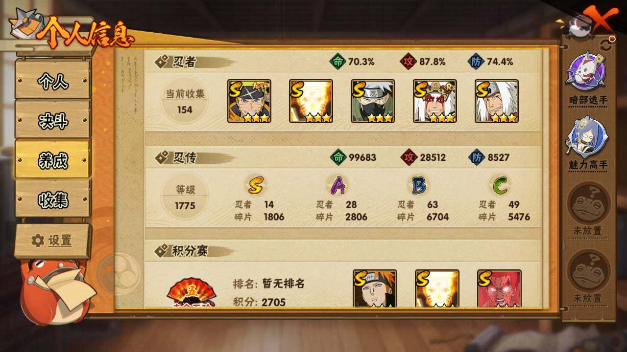 可免费转苹果 V6 726万战力 14S-28A 忍战大野木80片 舍人80片