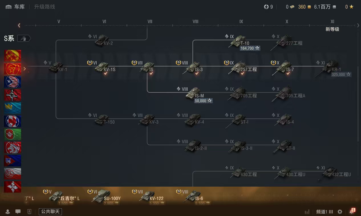 3辆10级银币车:爆裂者、IS7、试验型重战车6-9级银币车:12辆