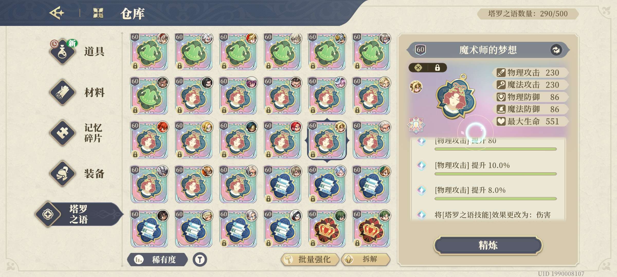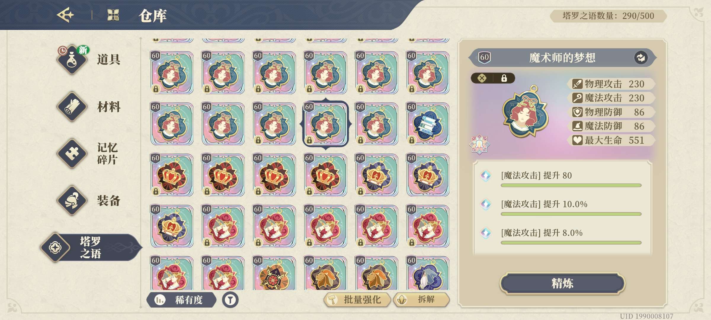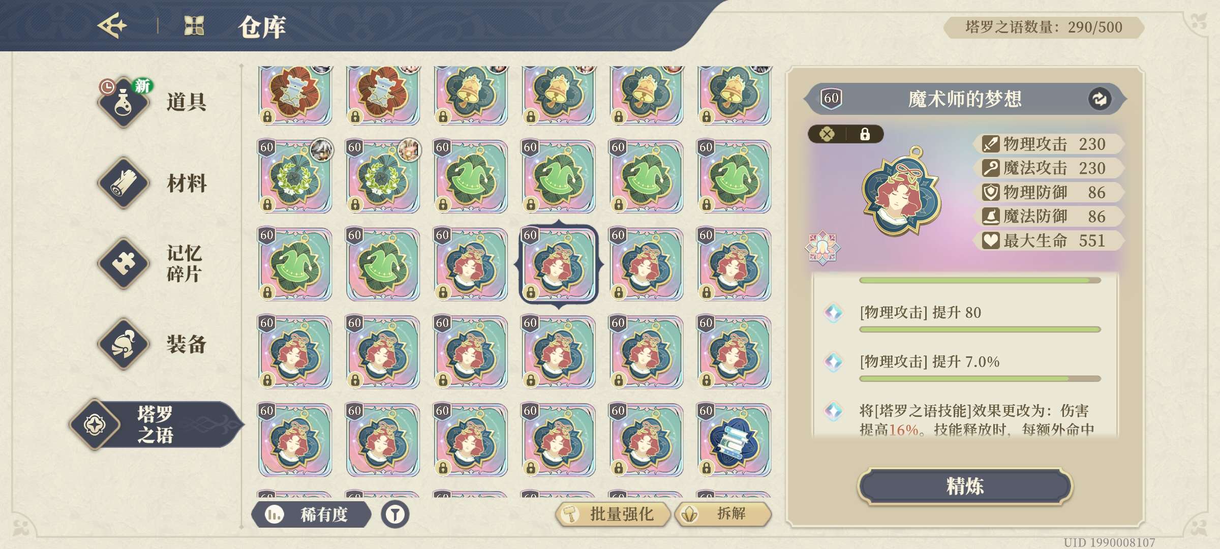 所有都说顶流皮肤很多买了,天赋,装备武器,塔罗,完美的很多...