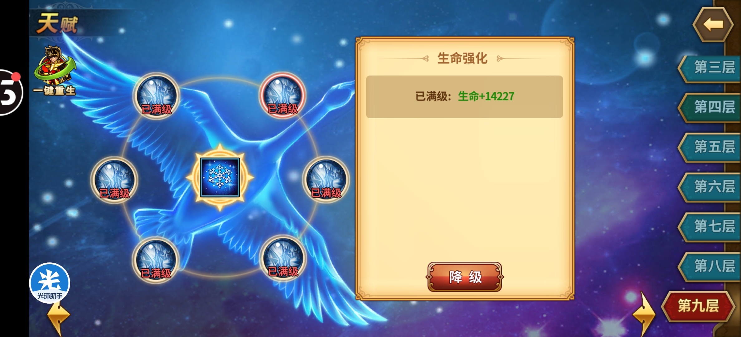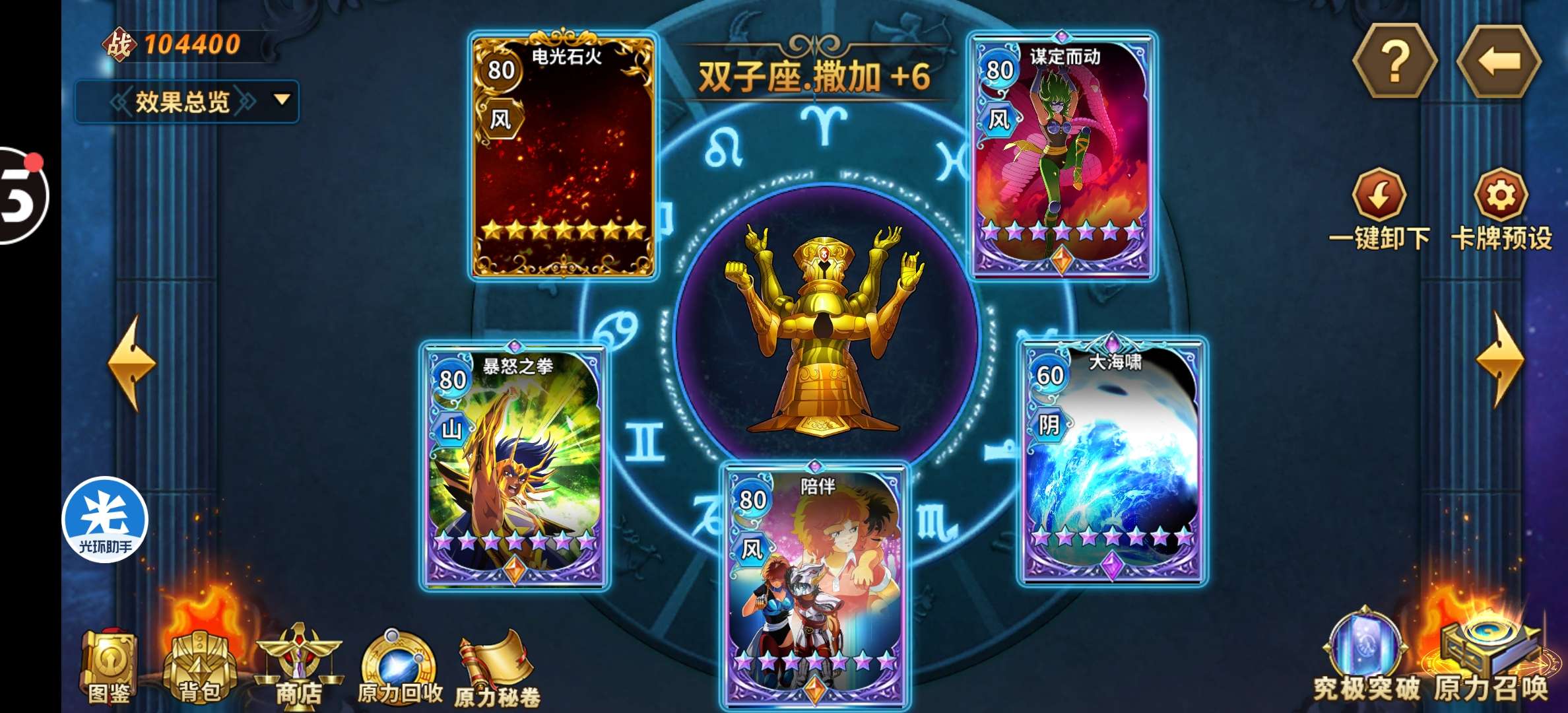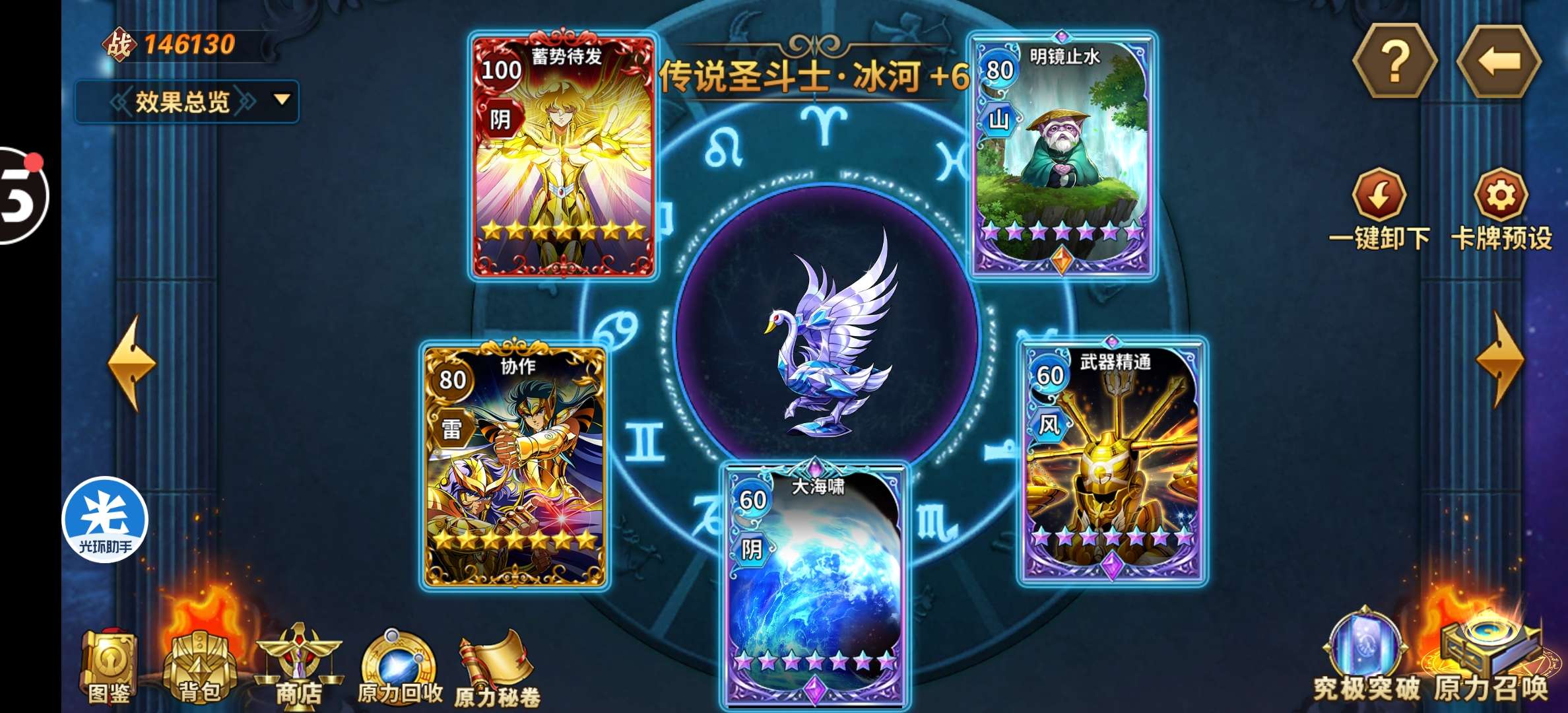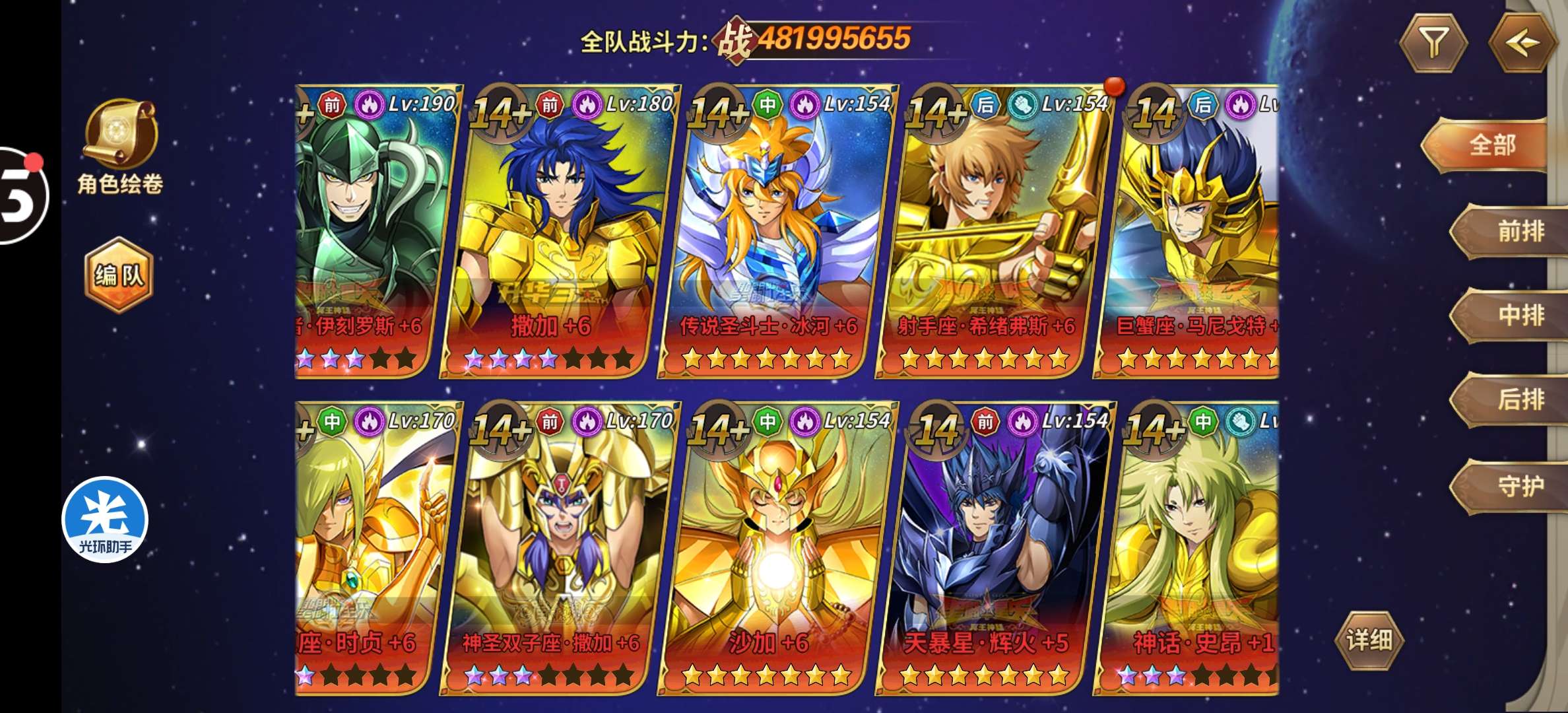 5觉升华传冰,4觉升华沙加,2觉希绪弗斯。竞技场第7,神龙守护差一次。除了打不过15大佬,其余都能打