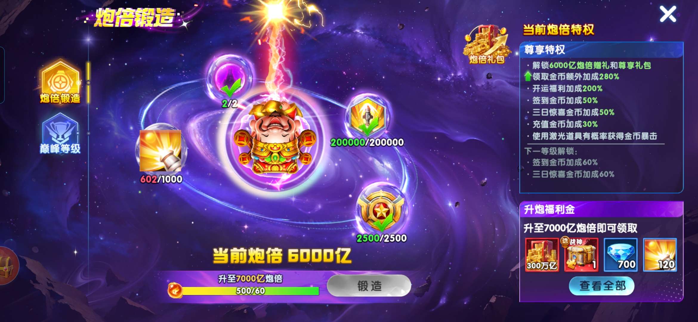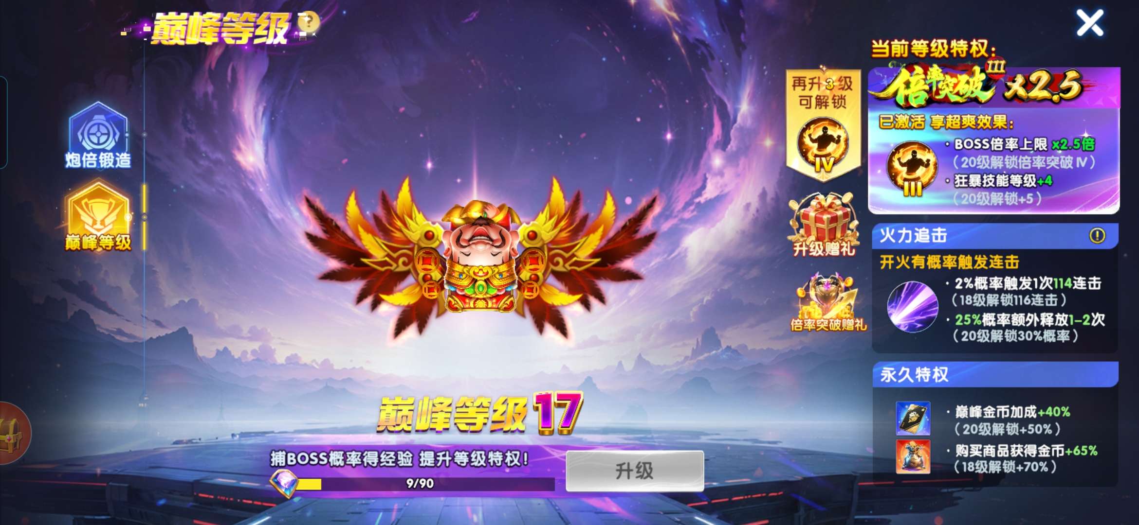 无绑v2 6000炮 27900万亿 狂暴2100+ 巅峰17 道具充足上线领翅膀