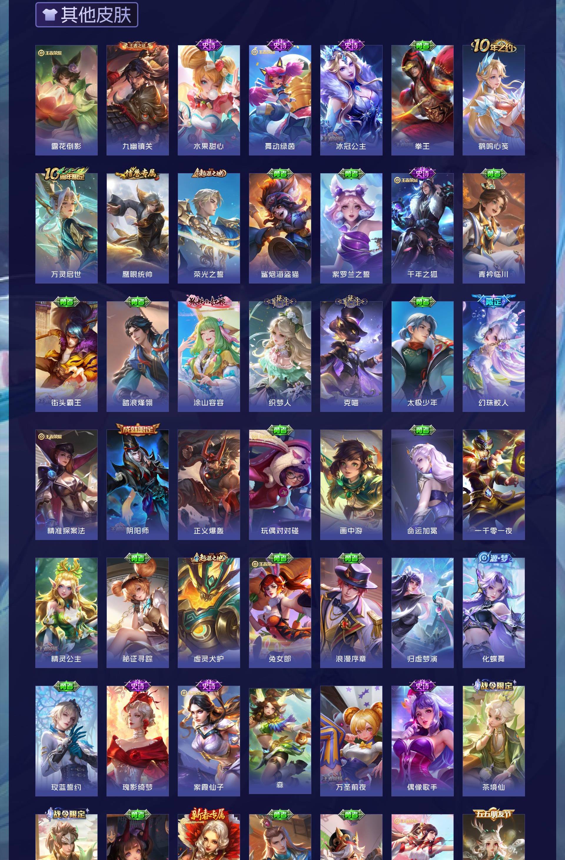 V7 皮肤92 英雄75 至尊星耀 无双皮肤3 珍品传说1 传说11 其他皮肤80