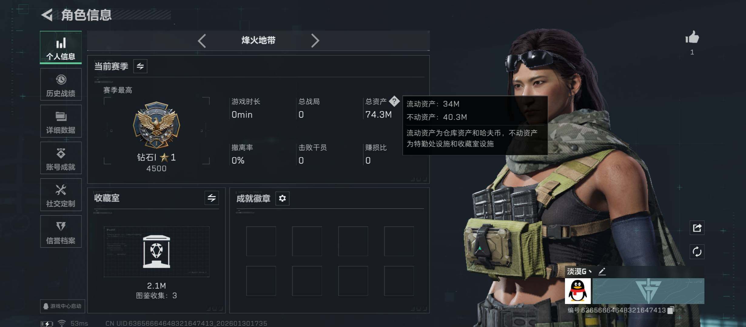 【小额资产号74M.适合小白入游首选.性价比超高账号】【Q区三端互通】【无二次】YXz7693-特勤处:仓库8级/靶场7级/训练中心7级-总资产74m-哈夫币2206w-烽火等级:37级