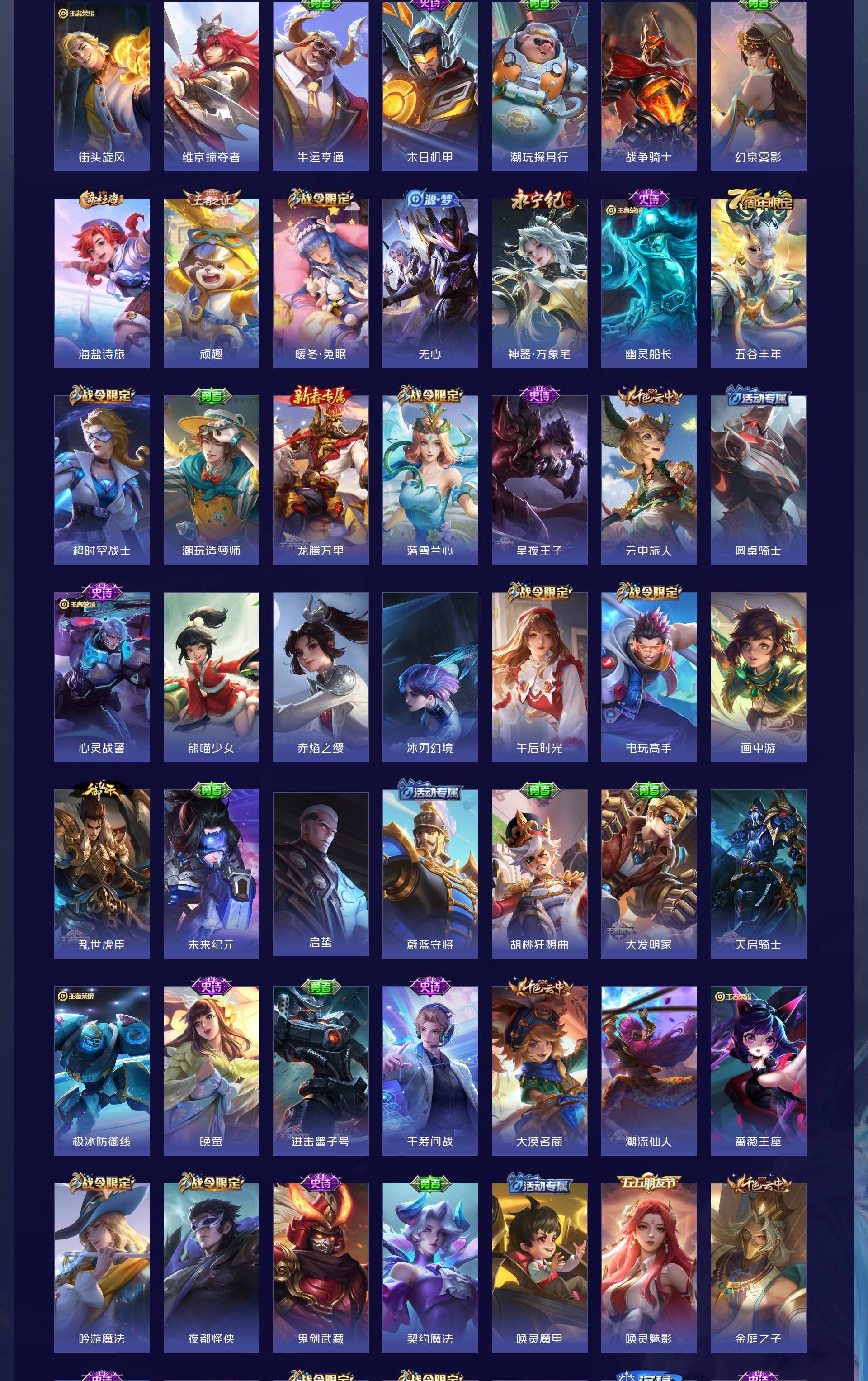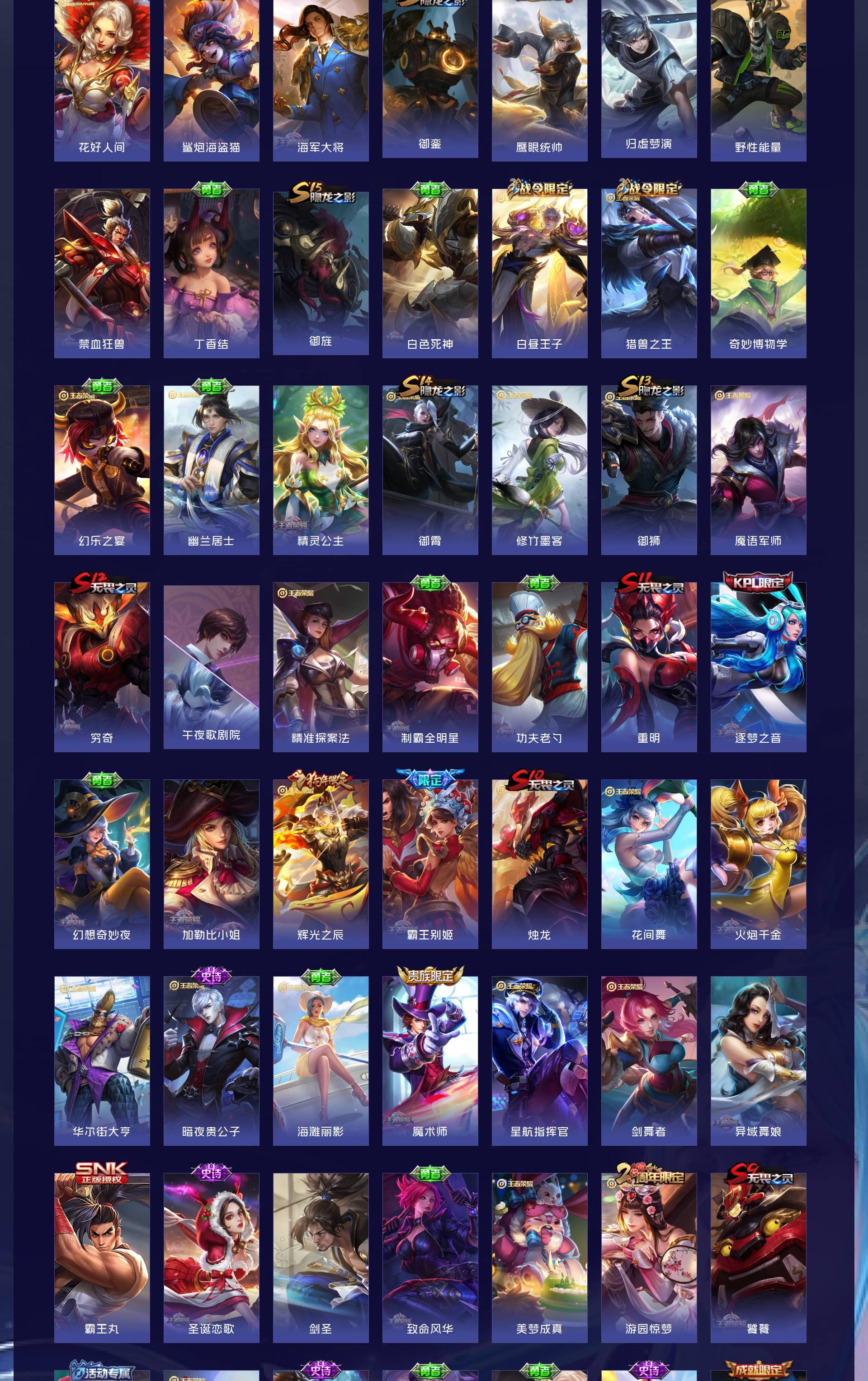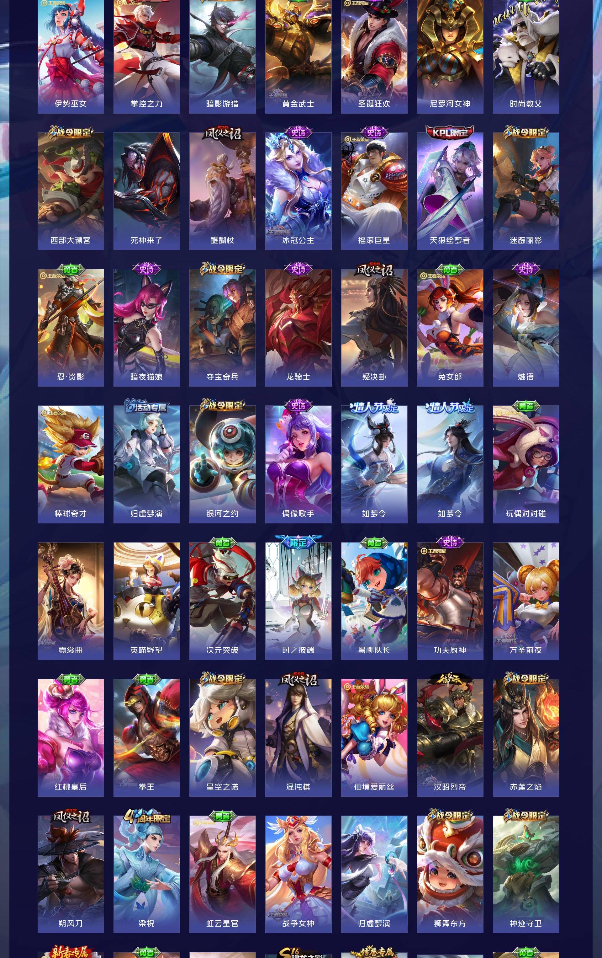 V9 皮肤448 英雄129 最强王者 荣耀典藏7 无双皮肤3 传说23 其他皮肤419