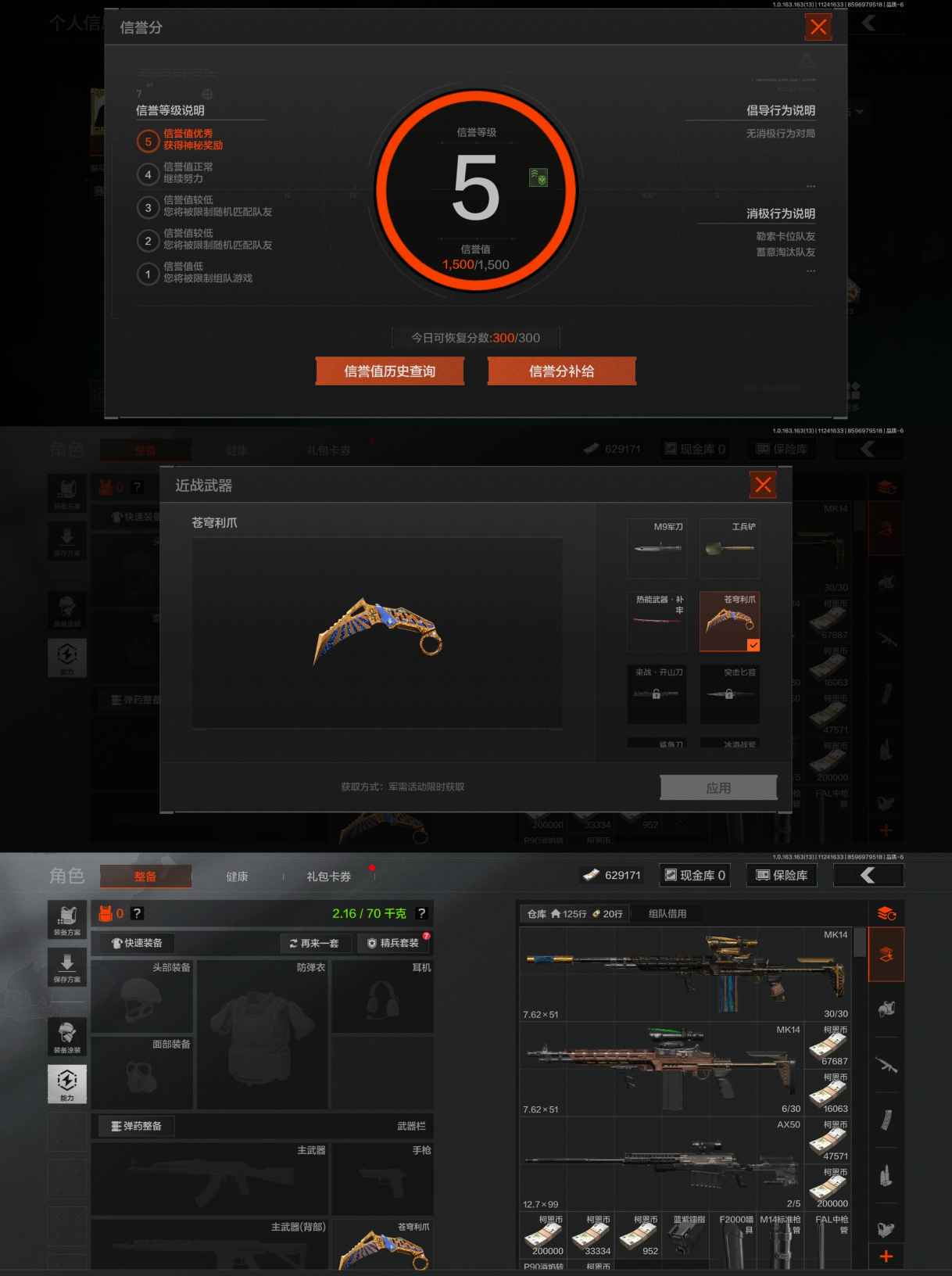 仓库价值2.5M 热能武器补牢 苍穹利爪 4金枪 -等级30