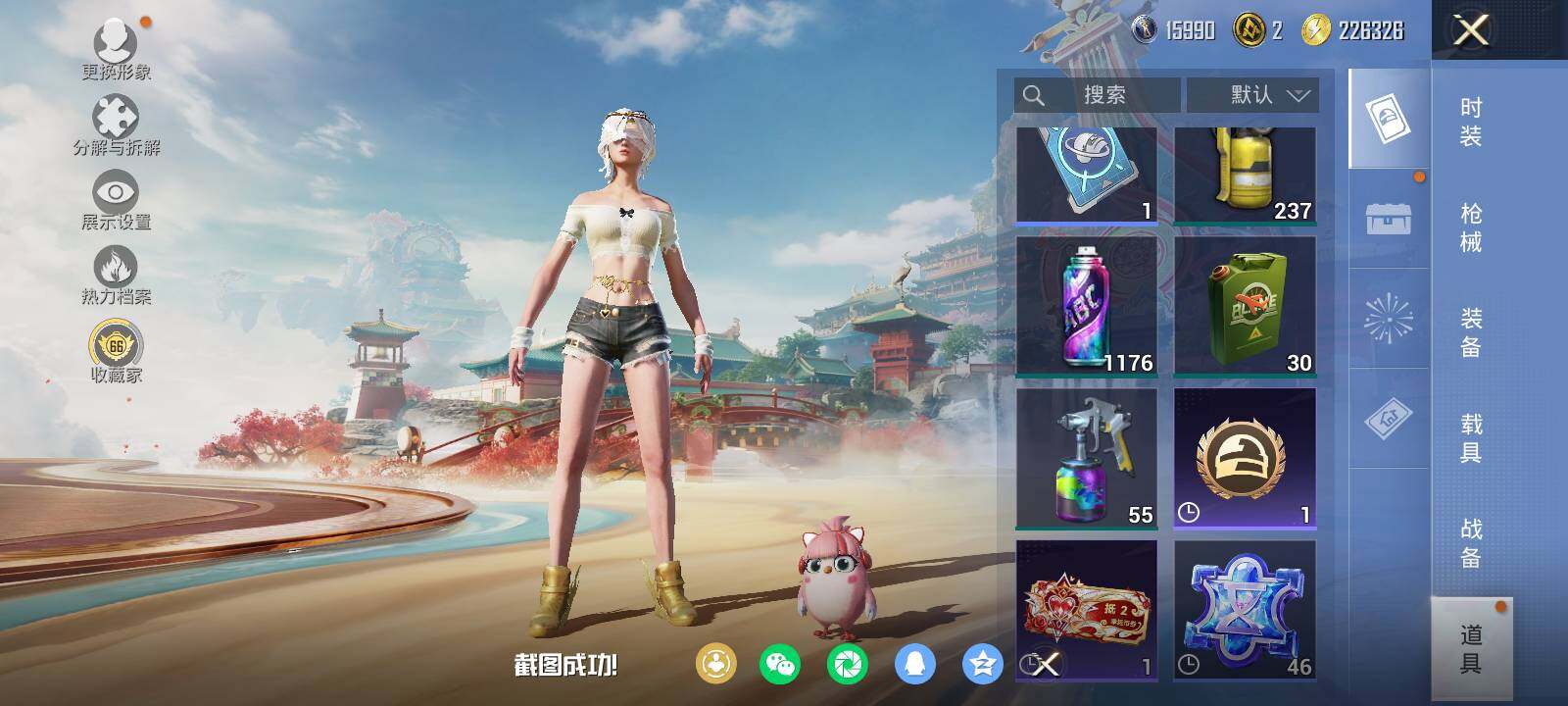 安卓 手Q-13粉装-4特效枪-0载具-3粉色飞行器-69680热力值-15王