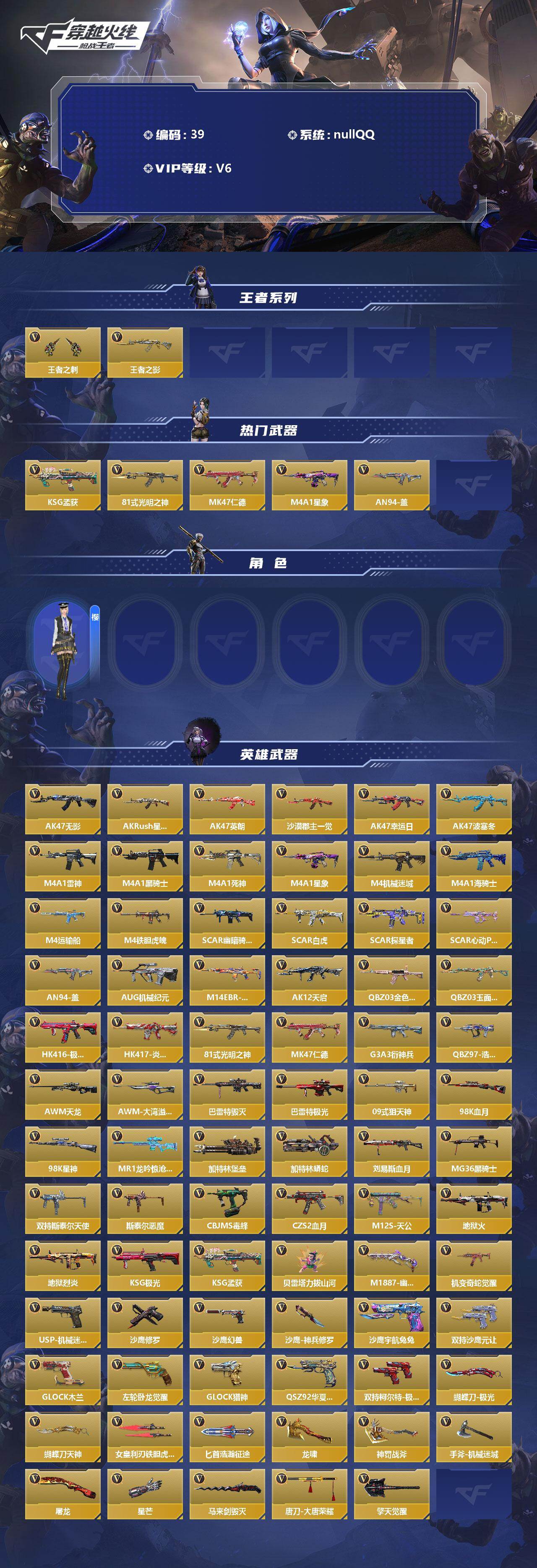 VIP6/162V/孟获套/王者之刺/王者之影/KSG-孟获/81式-光明之神/MK47-仁德/M4A1-星象/AN94-盖/樱/AK47-无影/AK47-Rush-星速/AK47-英朗/AK47-沙漠郡主-一觉/AK47-幸运日/AK47-波塞冬/M4A1-雷神/M4A1-黑骑士/M4A1-死神/M4A1-海骑士/M4A1-铁胆虎魄/SCAR-幽暗骑士/SCAR Light-白虎/SCAR-探