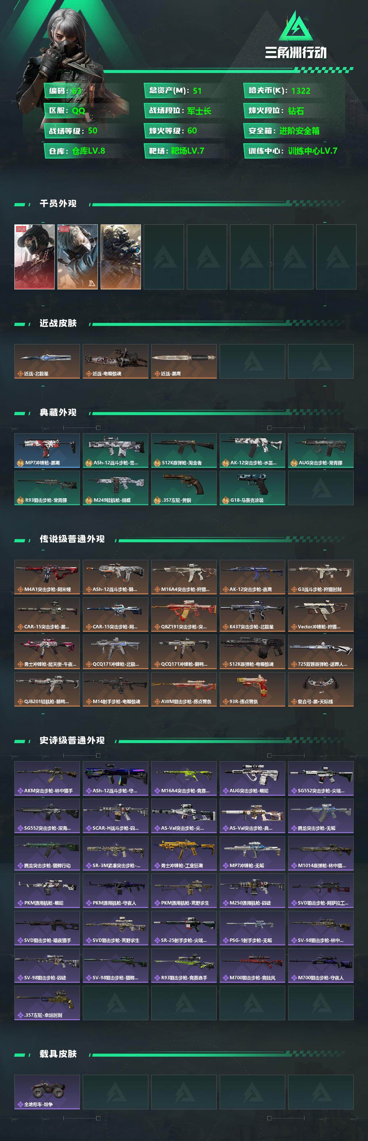 【少年徽章 近战北极星 电锯惊魂 8级仓库 满体力 满负重 满潜水】1322k哈伏币-2m流动资产-60烽火等级-钻石-50战场等级-军士长