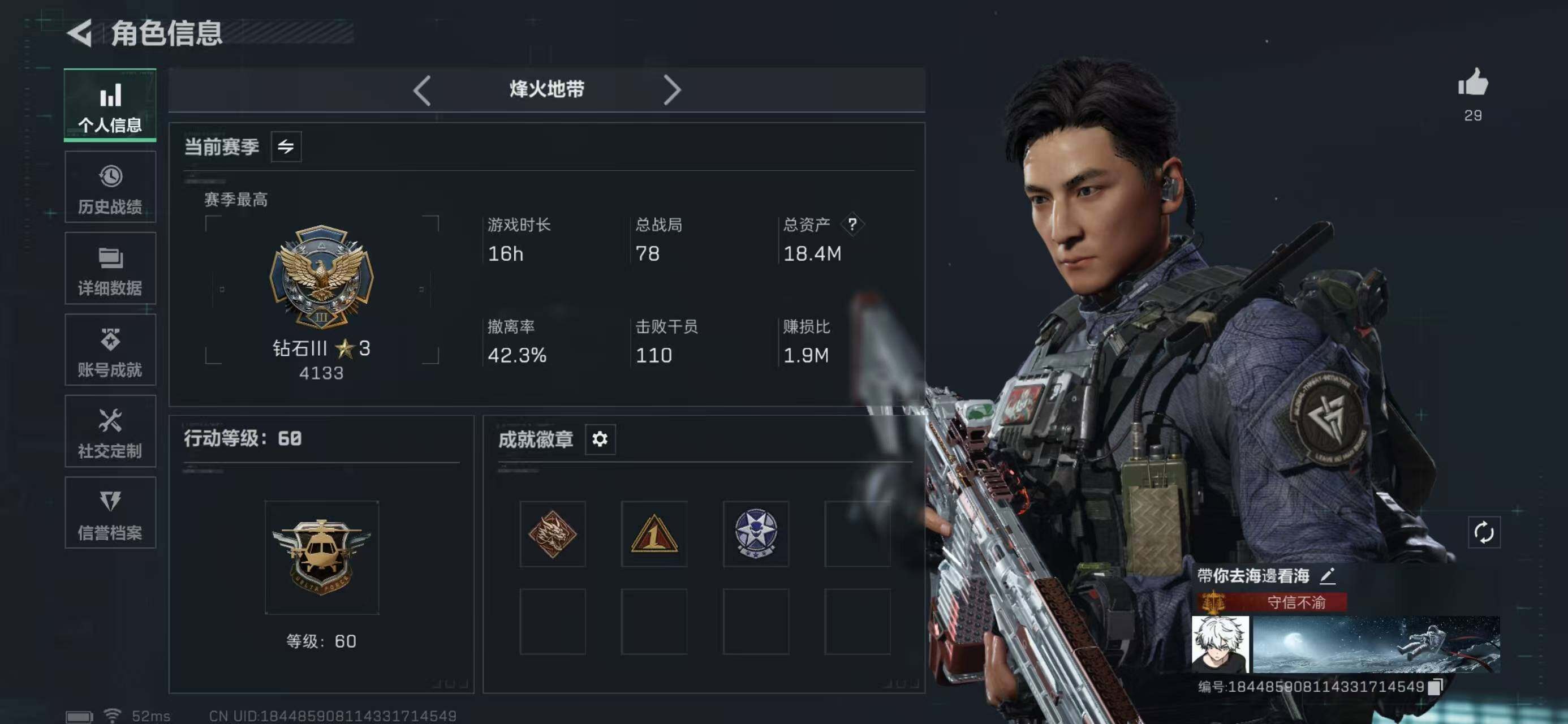 BL783k哈伏币-18m流动资产-60烽火等级-钻石-22战场等级-上等兵