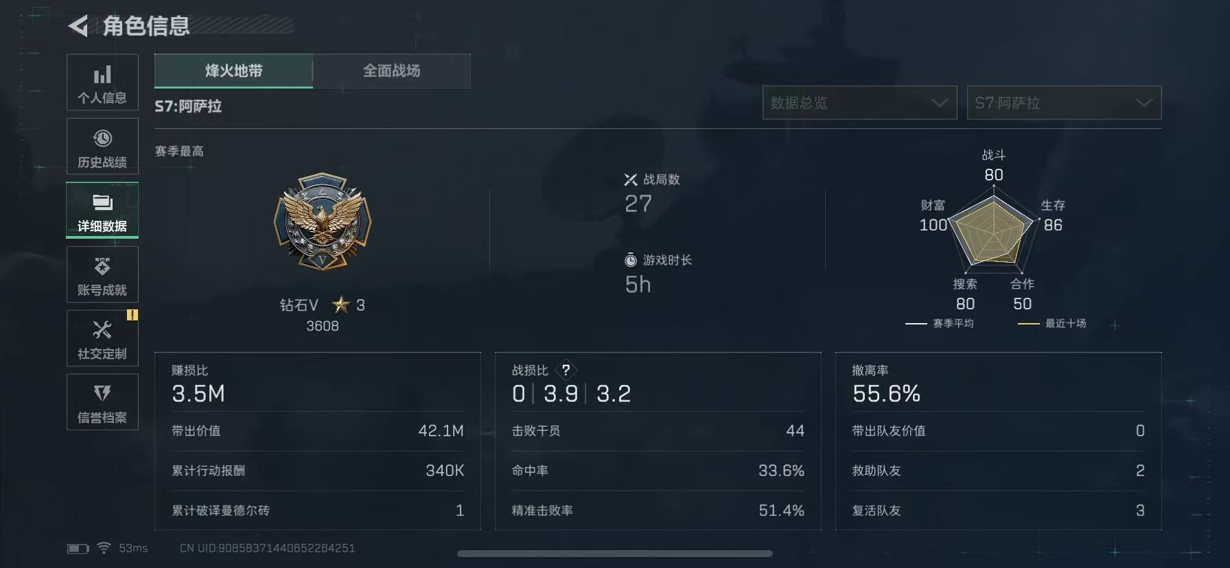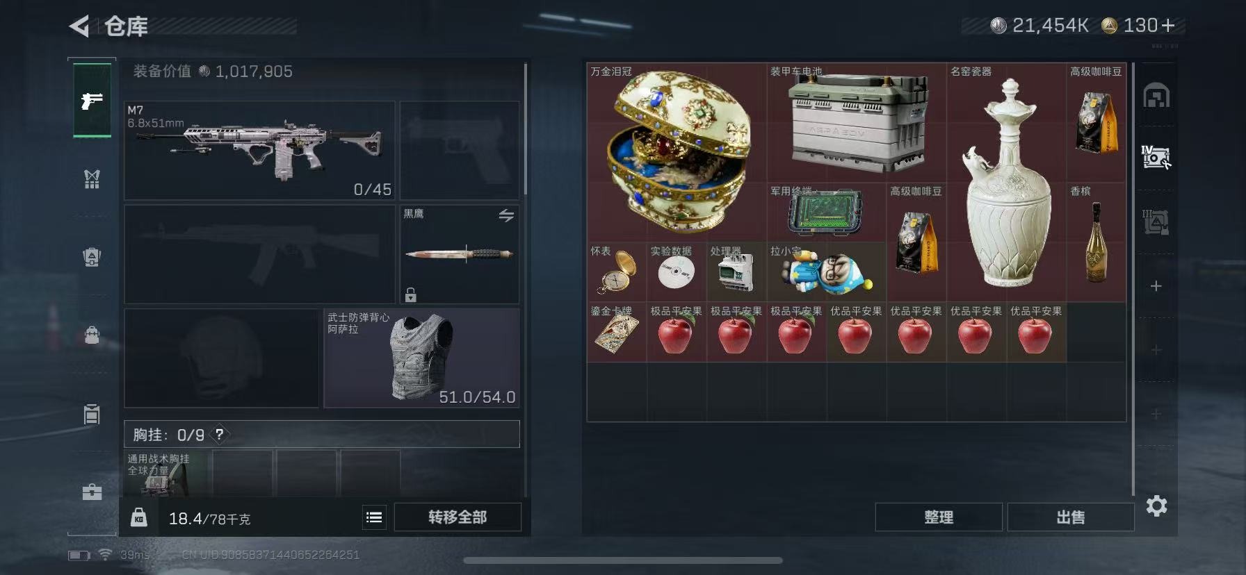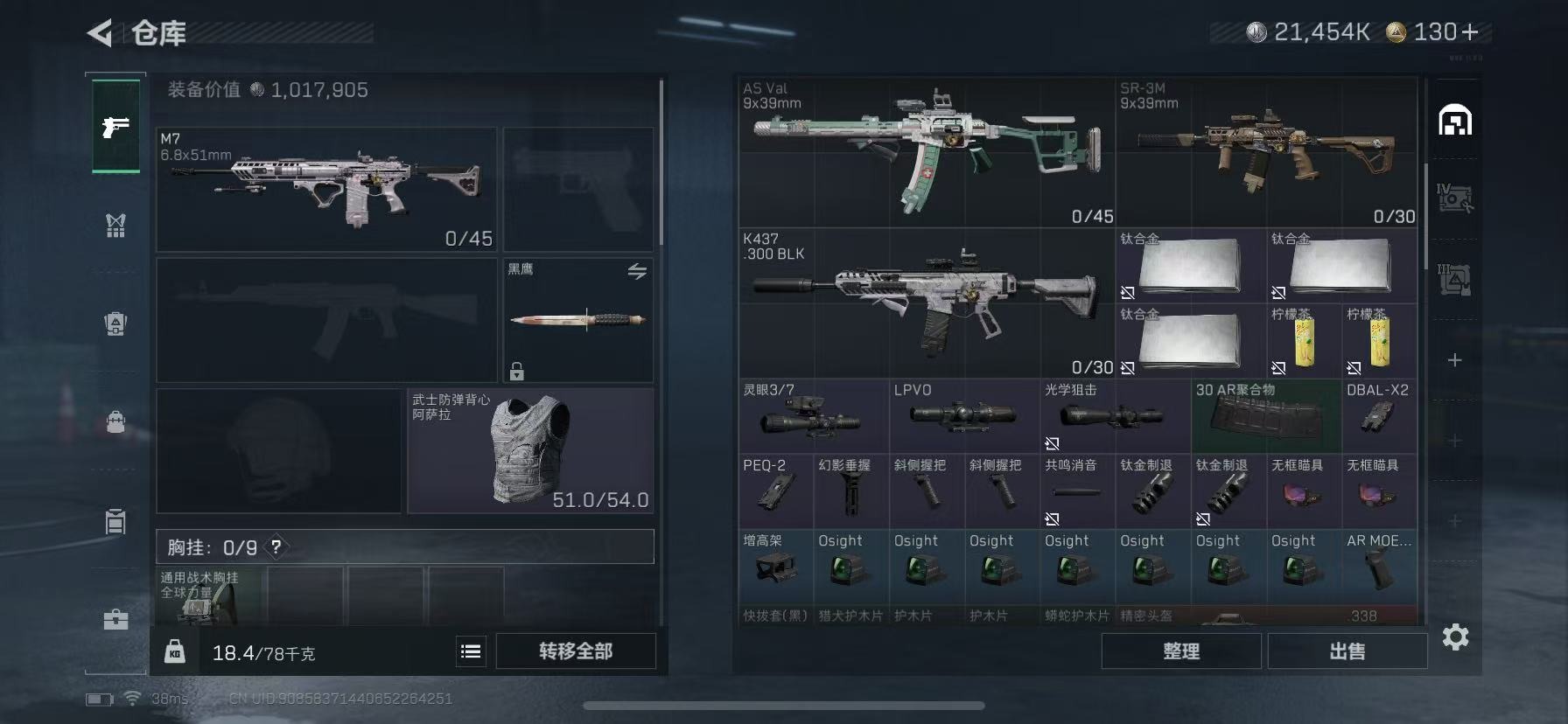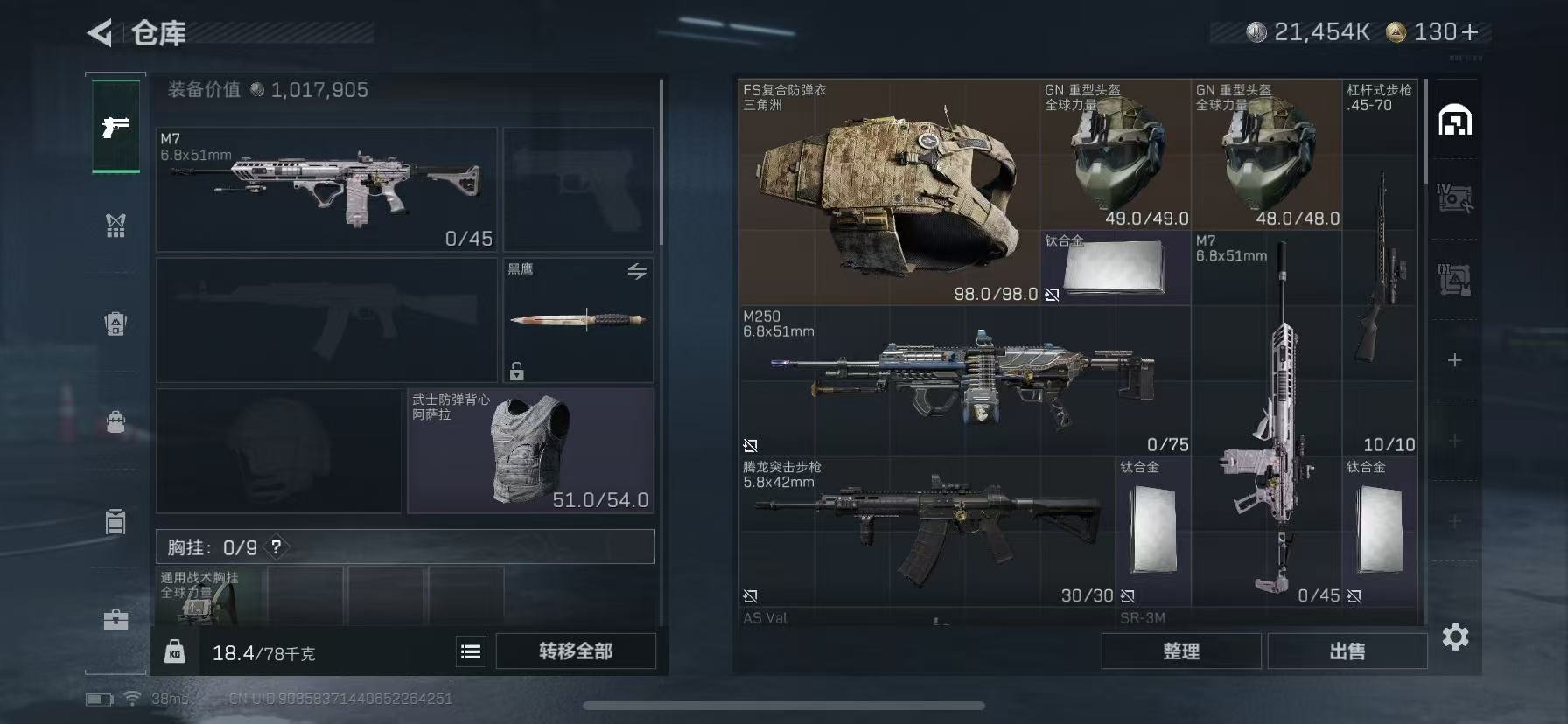 总资产:76.3M 1干员外观 11传说枪械 哈夫币:21.454K 可二次 可修改实名
