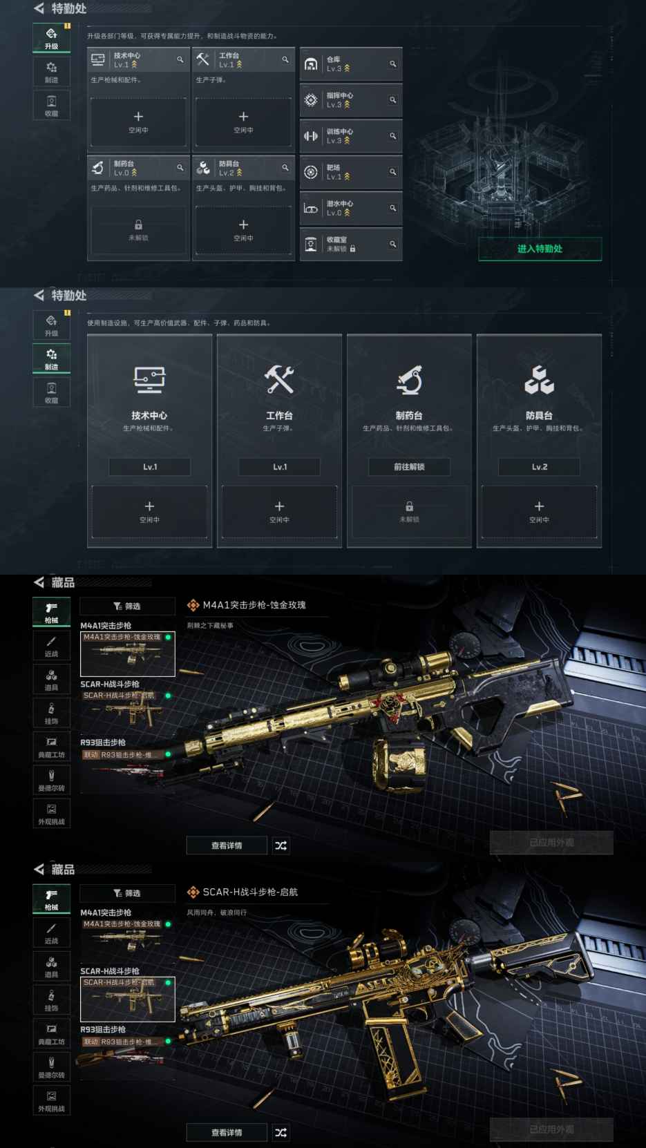 XXSJZ1737【特价出售无二不包】三端互通-Q区-总价值1M-烽火等级41-哈夫币591487 【枪皮】 M4A1突击步枪-蚀金玫瑰 SCAR-H战斗步枪-启航 R93狙击步枪-维什戴尔
