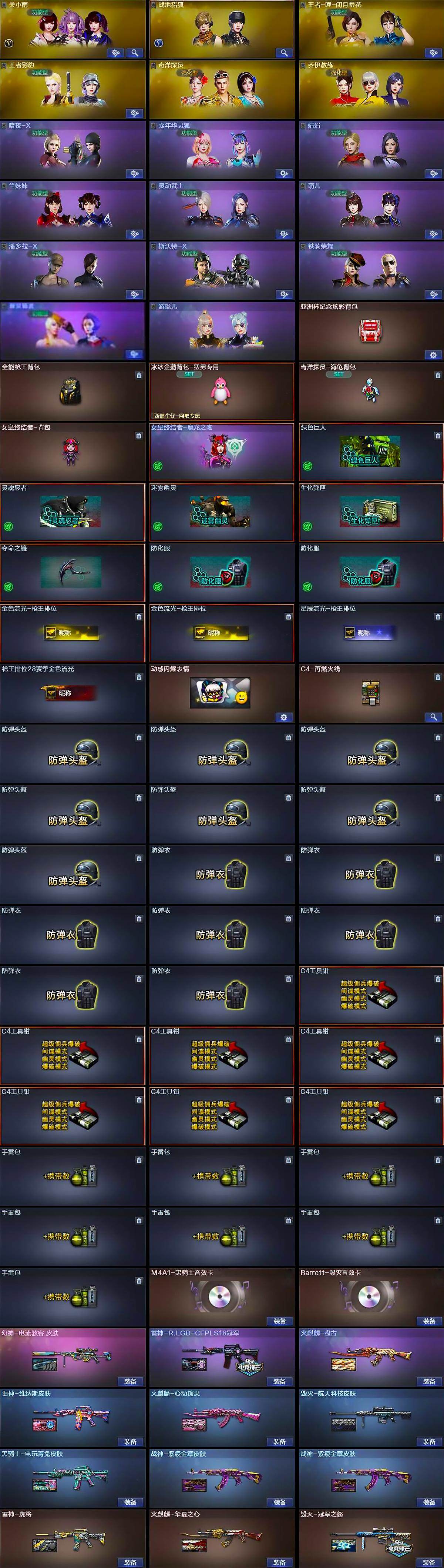 【皮肤】:幻神-电流骇客 皮肤,雷神-虎将,雷神-R.LGD-CFPLS18冠军,雷神-维纳斯皮肤,火麒麟-华夏之心,火麒麟-盘古,火麒麟-心动糖果,毁灭-冠军之怒,毁灭-航天科技皮肤,黑骑士-电玩青兔皮肤,战神-紫绶金章皮肤