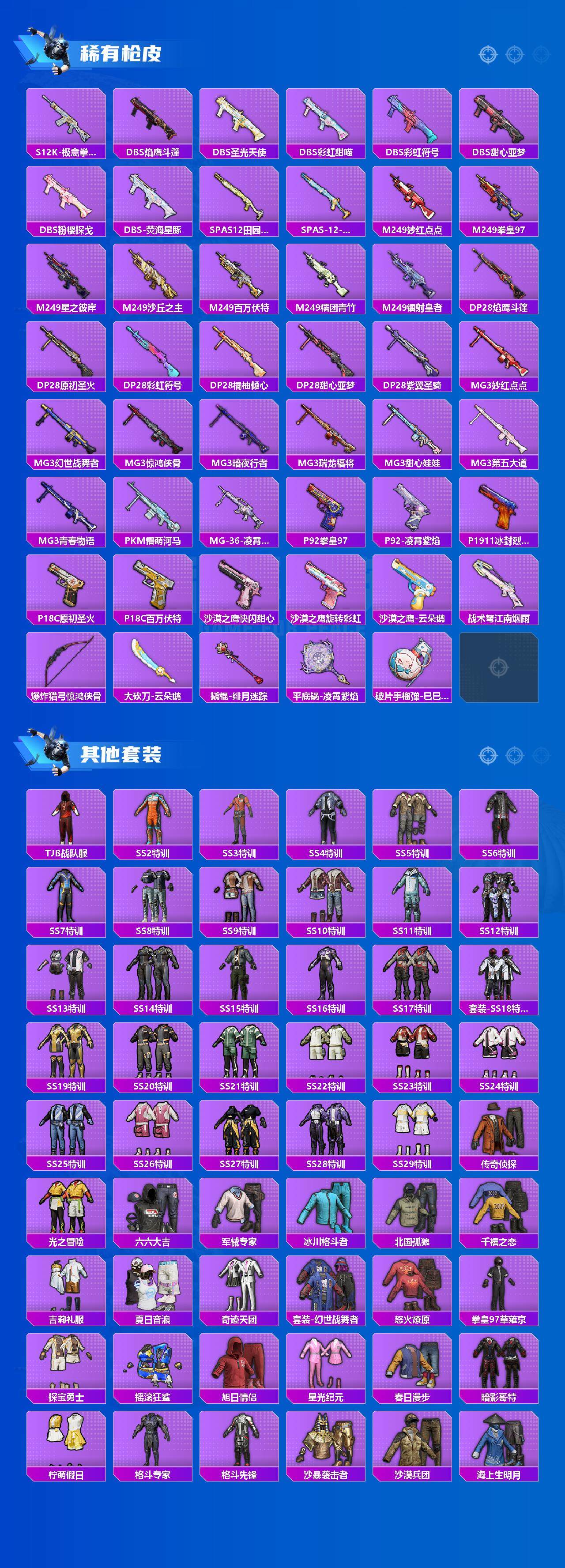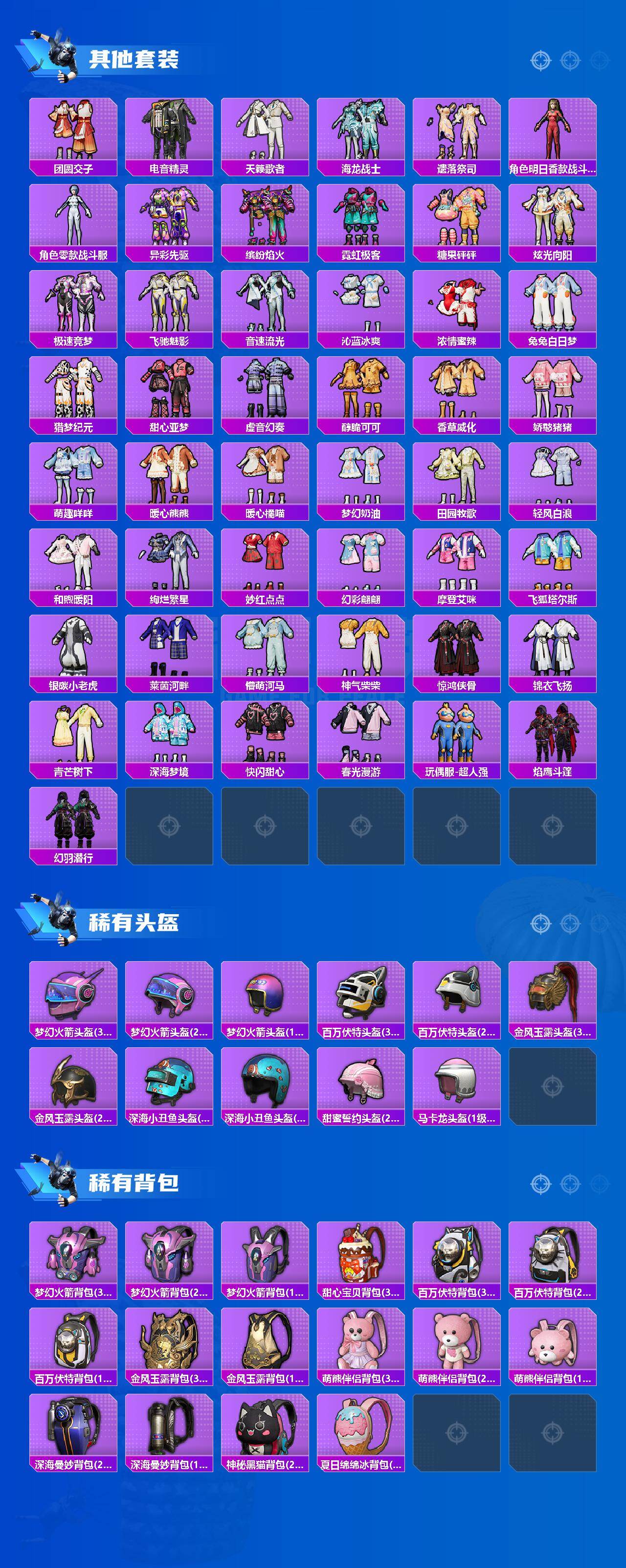 【热门品类】:粉装-梦幻火箭,粉装-音爆索尼克,套装-都市猎人,套装-冥河战士,套装-深海小丑鱼,套装-奇异狩猎者,套装-胖达团团,套装-胖达圆圆,套装-金羽特工,套装-浪客战士,套装-龟仙人,套装-暗影哥特