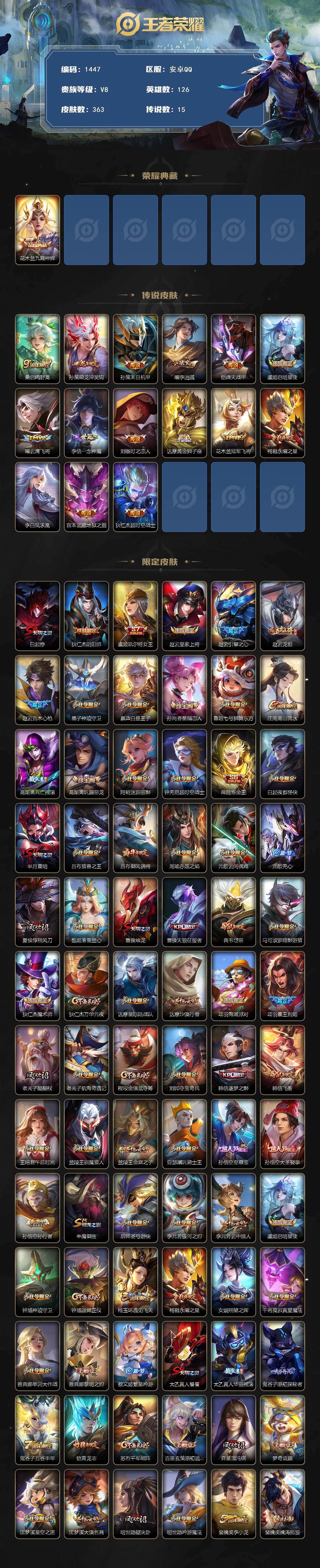 /安卓Q-V8-最强王者段位-126英雄-363皮肤-1典藏皮肤-15传说-104史诗