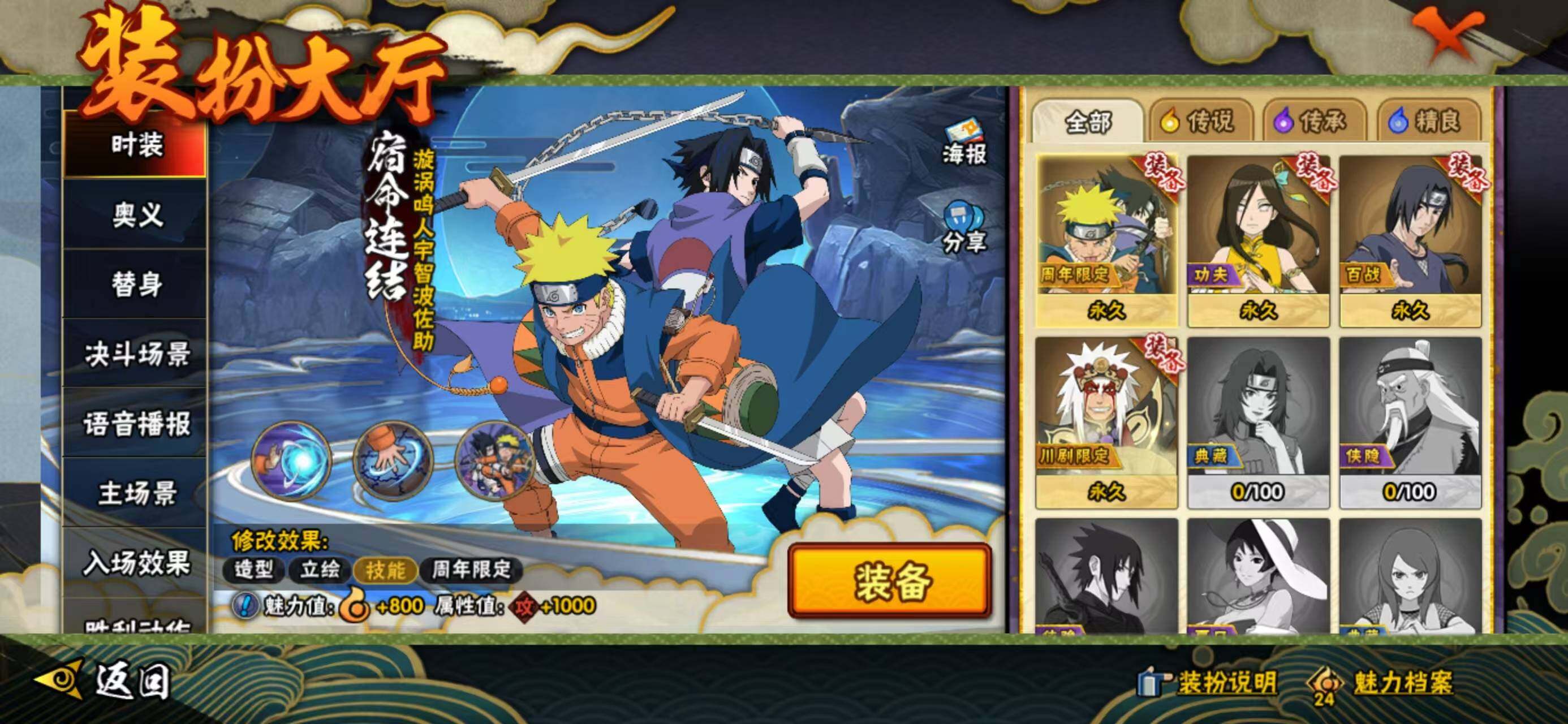 【BL·276w战力4s忍9a忍v1小号·百战鼬·川剧自来也·漩涡鸣人·宇智波佐助·仙人水门·卑留呼·大野木侠隐江湖】:宇智波鼬「须佐能乎」(3星),自来也「舞之豪杰」(3星),波风水门「九喇嘛连结」(3星),漩涡鸣人·宇智波佐助(3星)