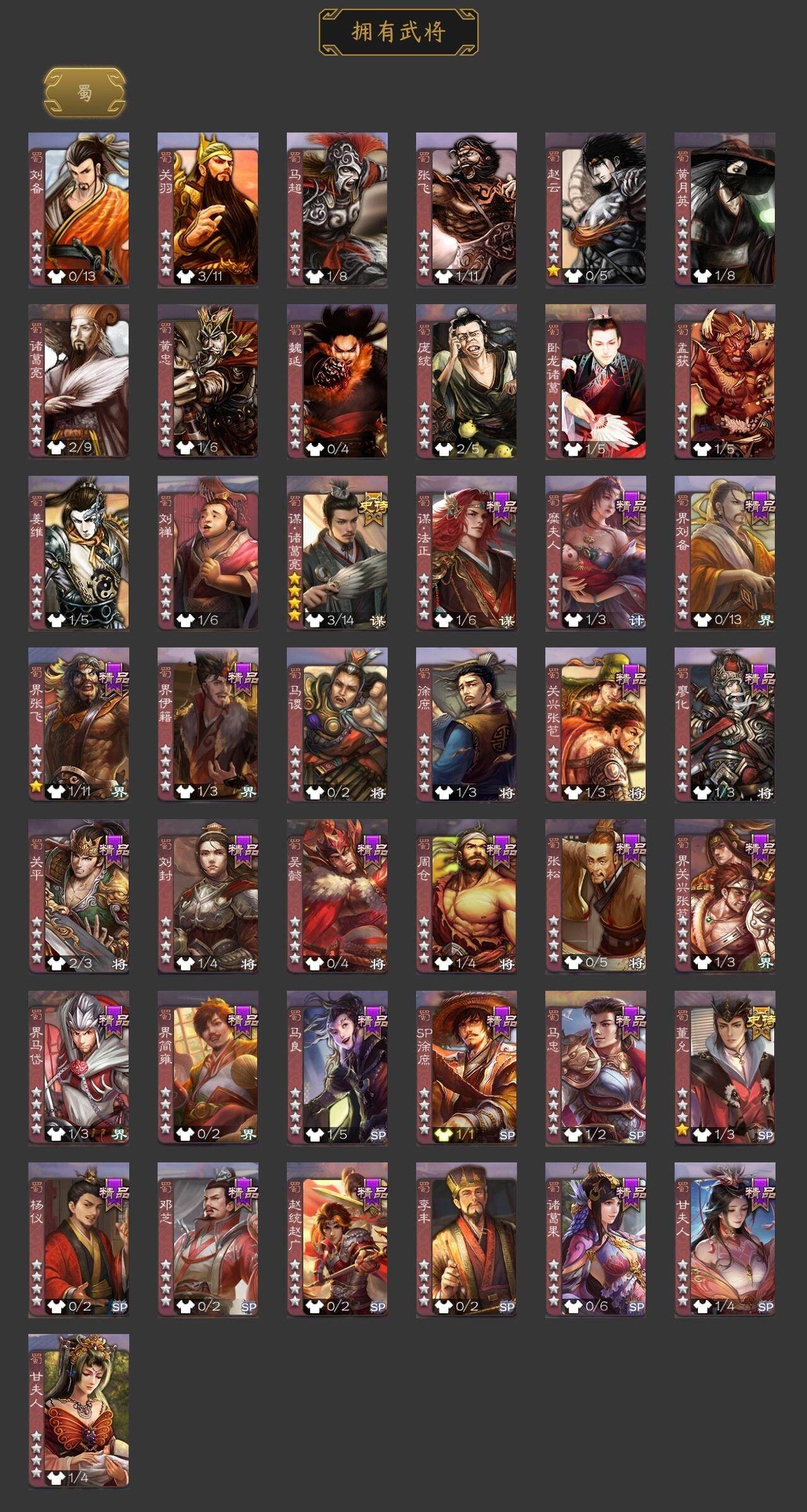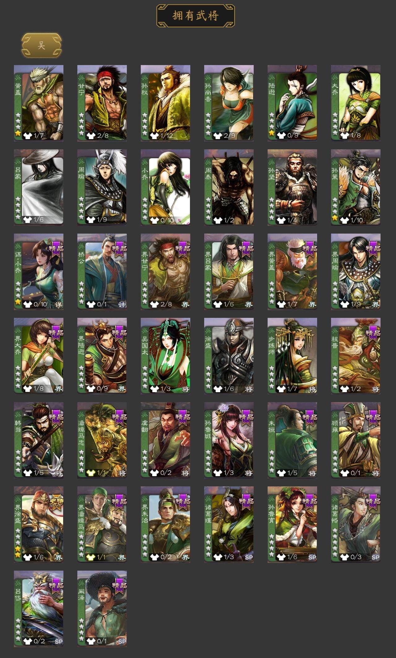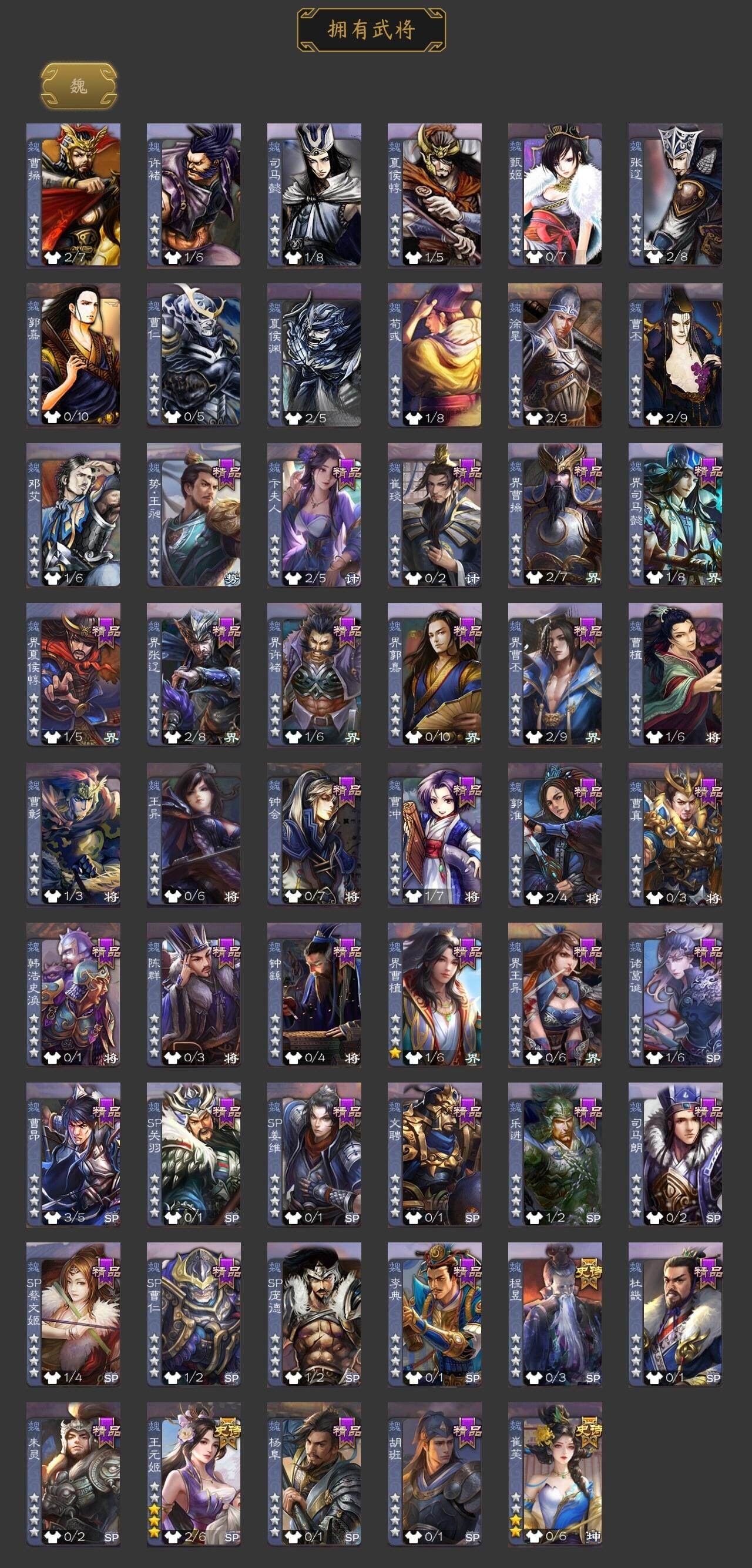 神刘备,王元姬,崔芙,程昱,谋诸葛亮,董允,界徐盛,麹义,SP关羽,SP曹仁,SP蔡文姬,乐进,曹昂,诸葛诞,朱灵,文聘,SP姜维,钟会,曹冲,郭淮,界王异,界曹操,界司马懿,界夏侯惇,界张