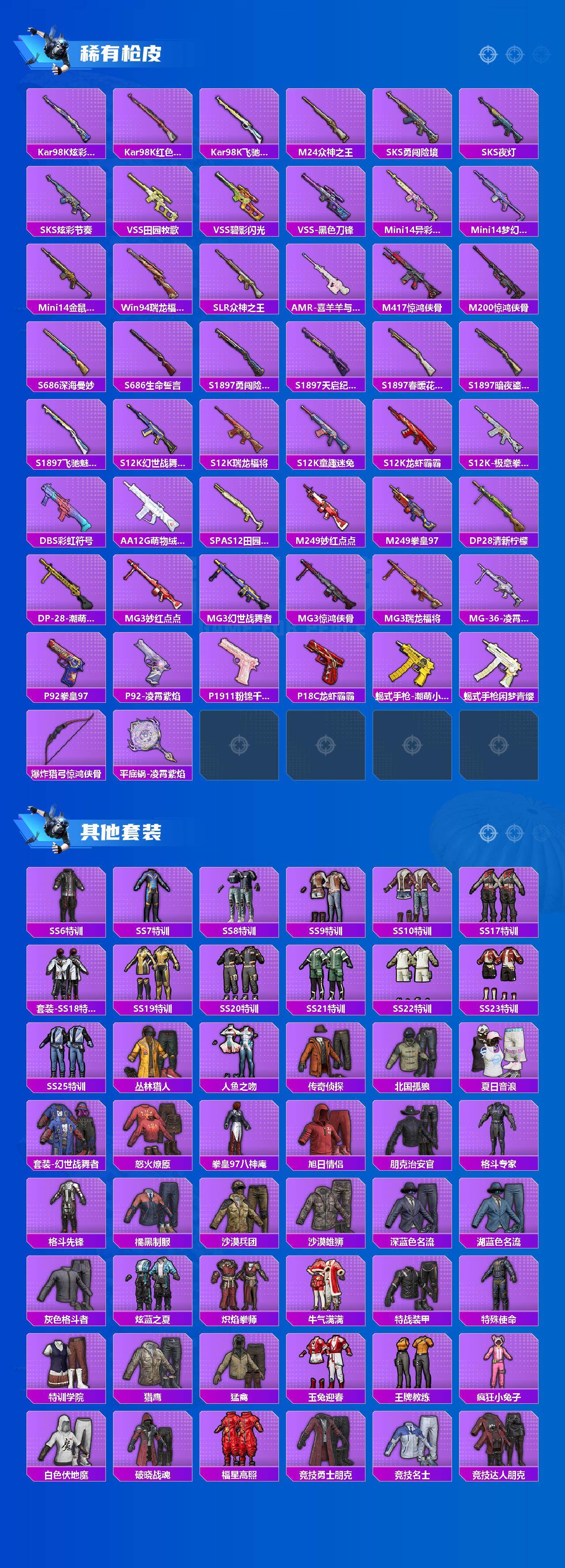 【粉色枪皮等级】:AKM-炫紫旋律(六级),P90-能量风暴(五级),Mini14-龙虾霸霸(五级),DP-28-豹影疾电(五级),MG