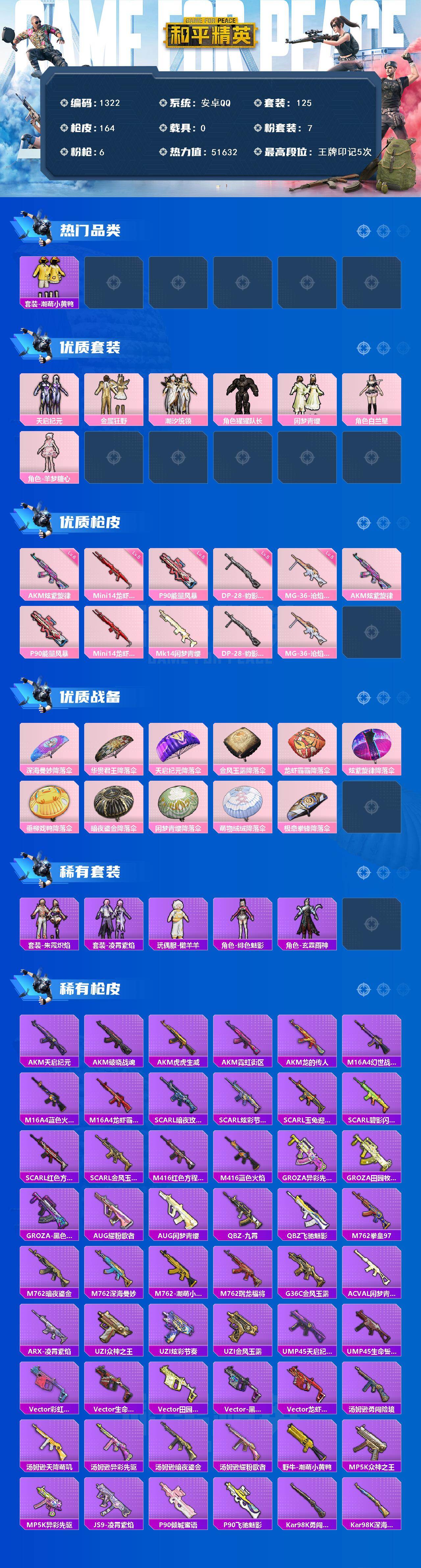 安卓 手Q-7粉装-6特效枪-0载具-1粉色飞行器-51632热力值-5王牌印记-125套装-164枪皮
