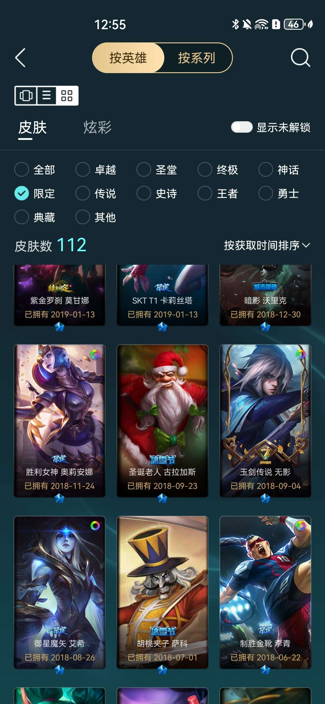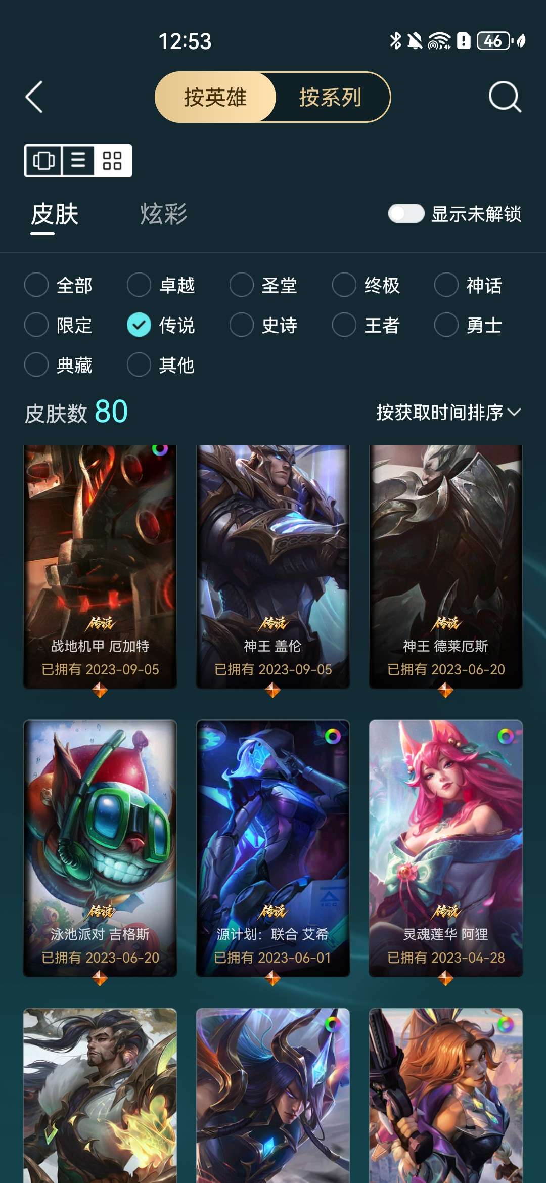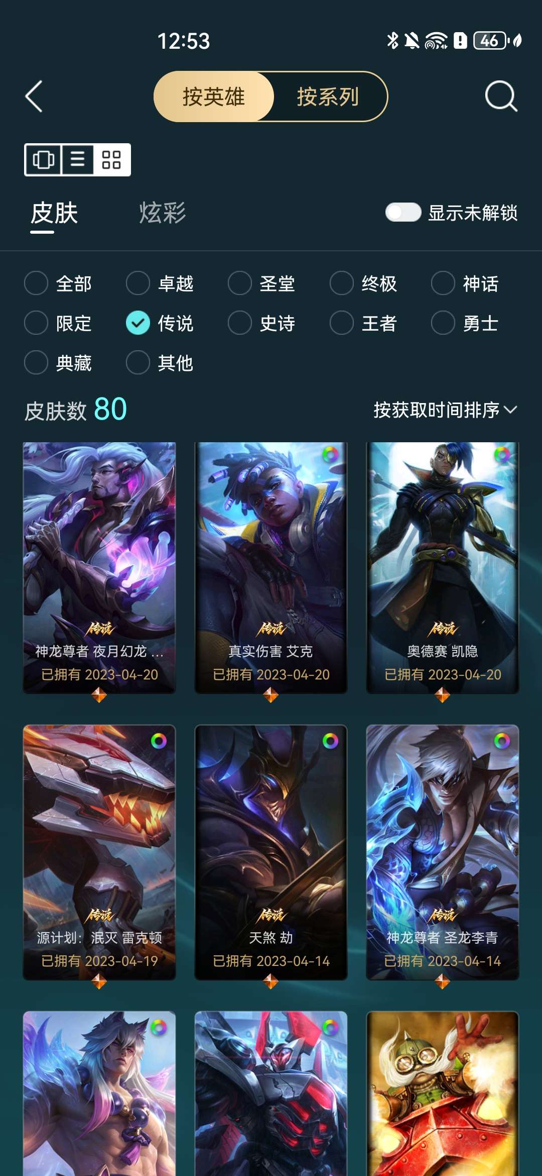 二周年诺手 龙刀 斩星剑圣,各种冠军皮 联赛皮 还有周年限定,皮肤太多截不过来屏