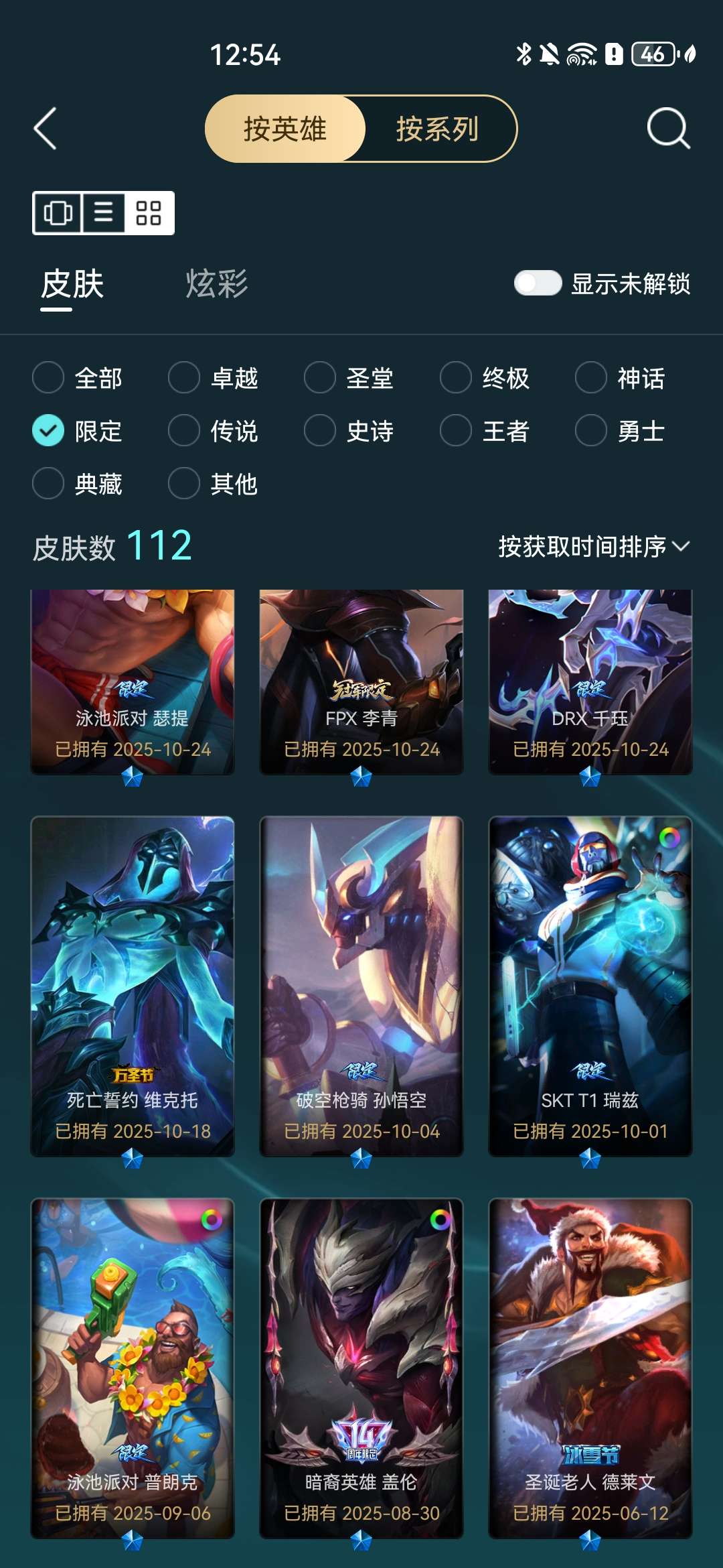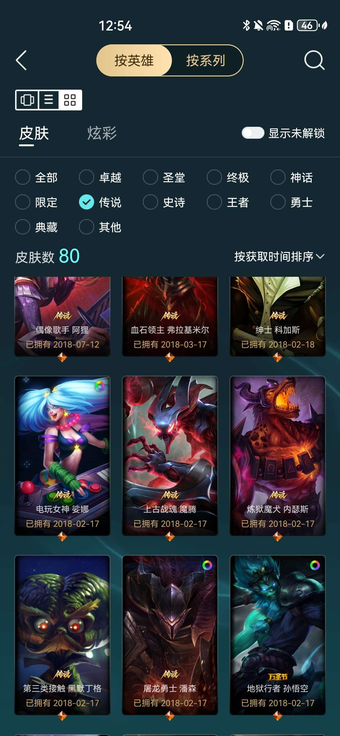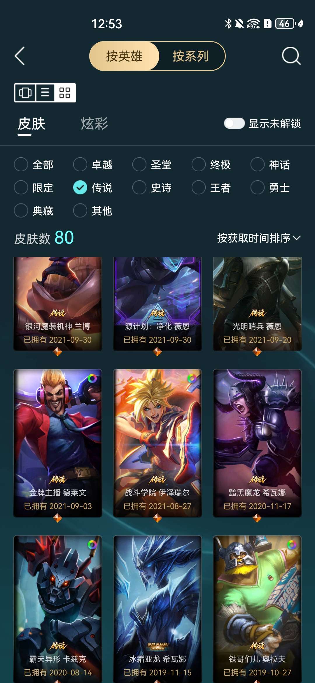 二周年诺手 龙刀 斩星剑圣,各种冠军皮 联赛皮 还有周年限定,皮肤太多截不过来屏