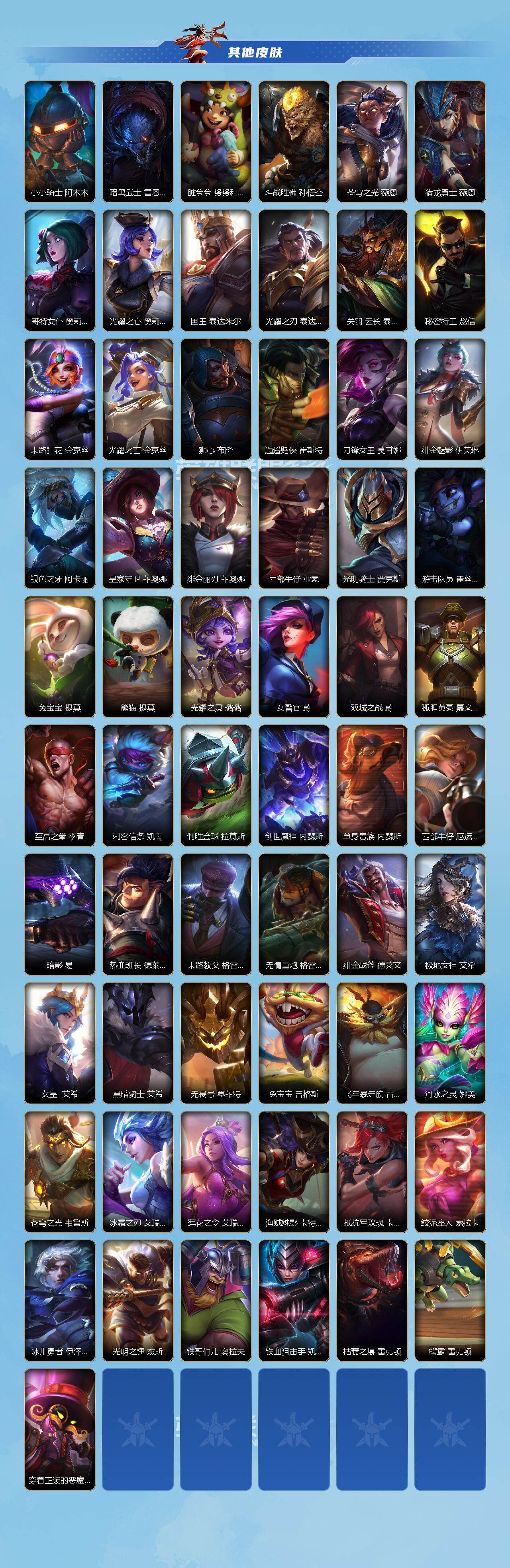 83英雄/136皮肤/1神话/12传说/62史诗/荣耀黄金/