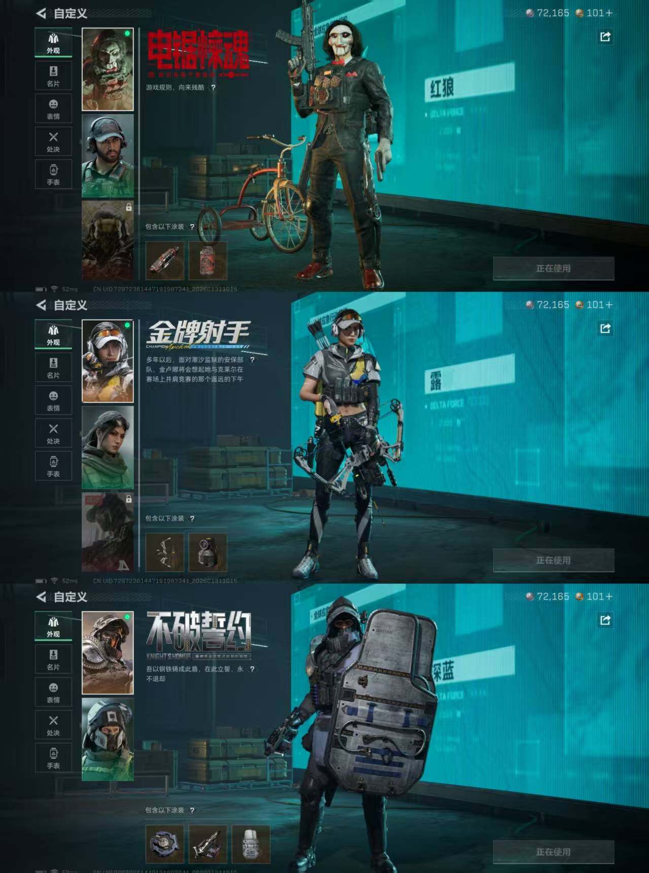 aa62,皮肤电锯惊魂金牌射手不破誓约,三端互通烽火满级,总资产34.4M,6橙枪,4金吊饰,仓库6级训练中心4级靶场2级