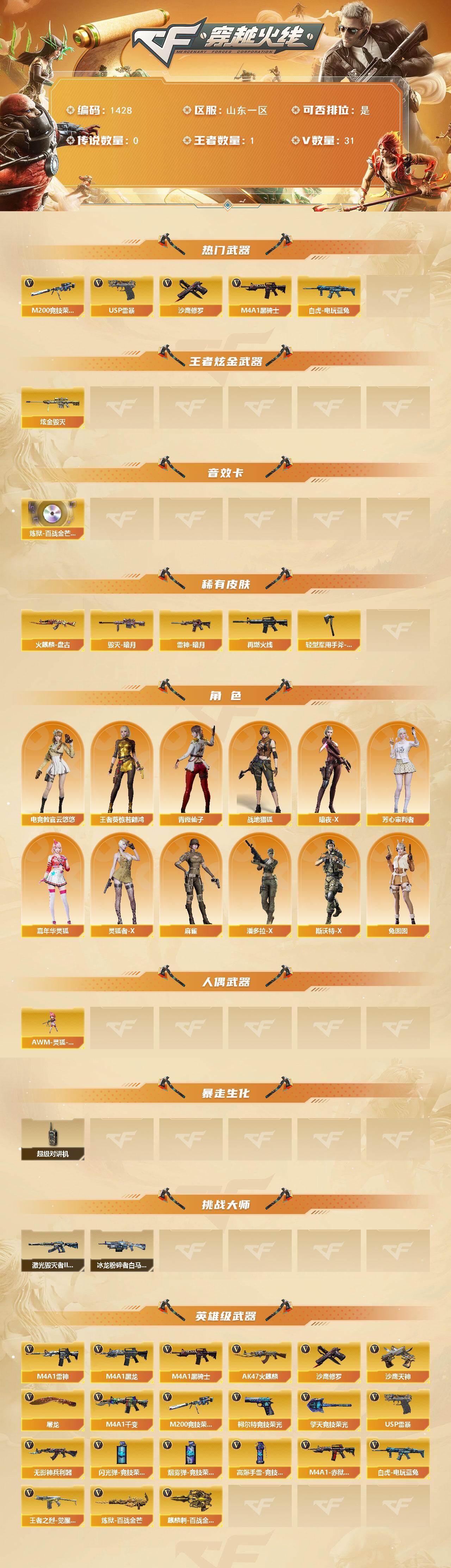 山东一区-34V-1王者武器数-1炫金武器数【热门武器】:M200-竞技荣光