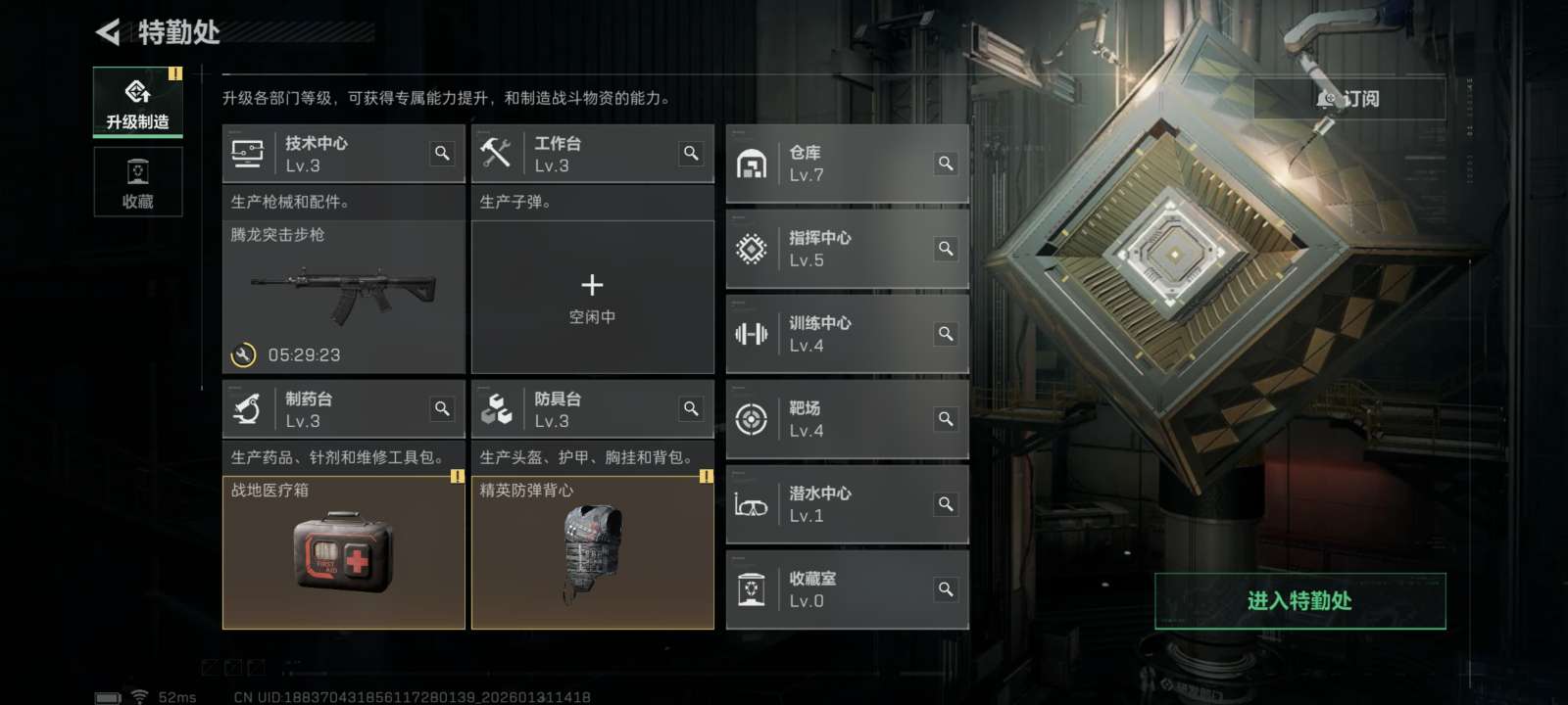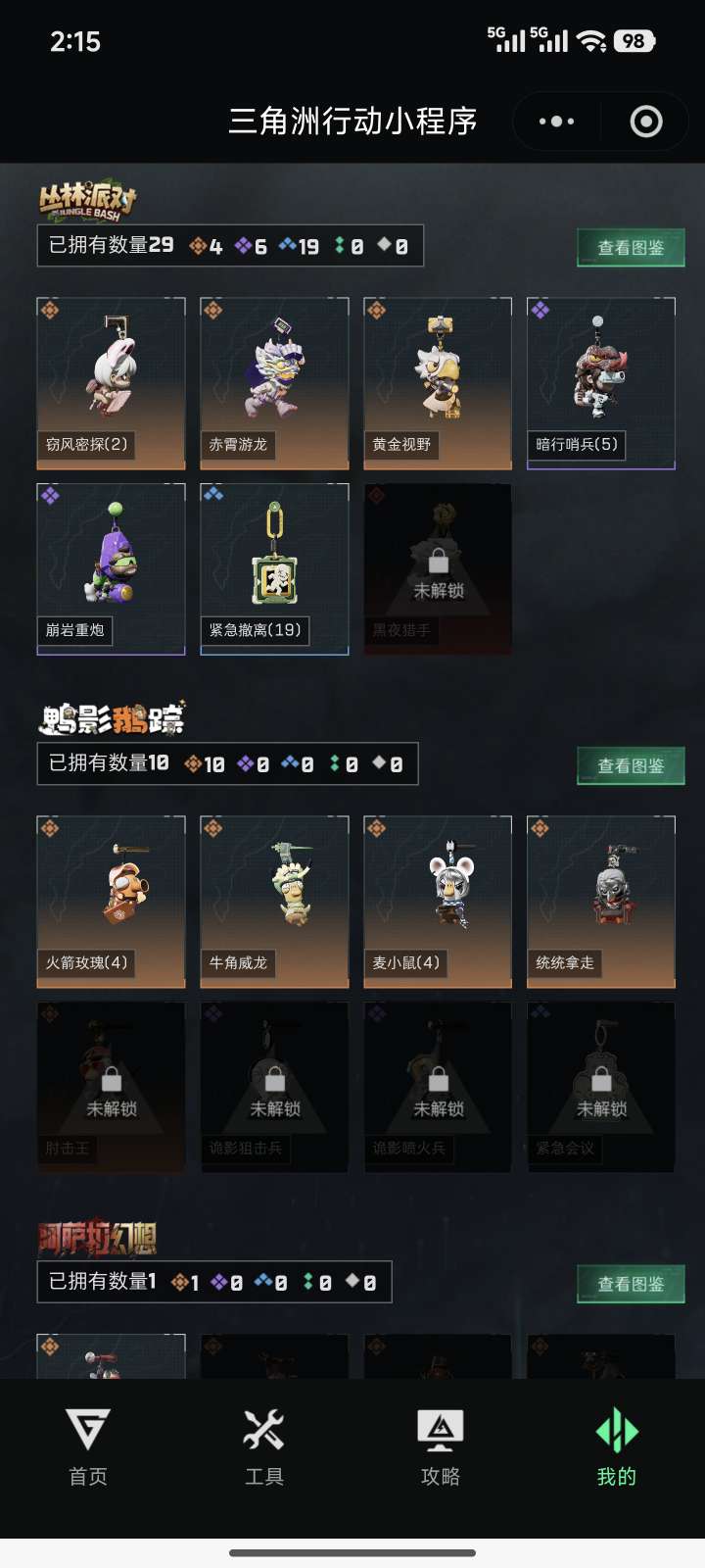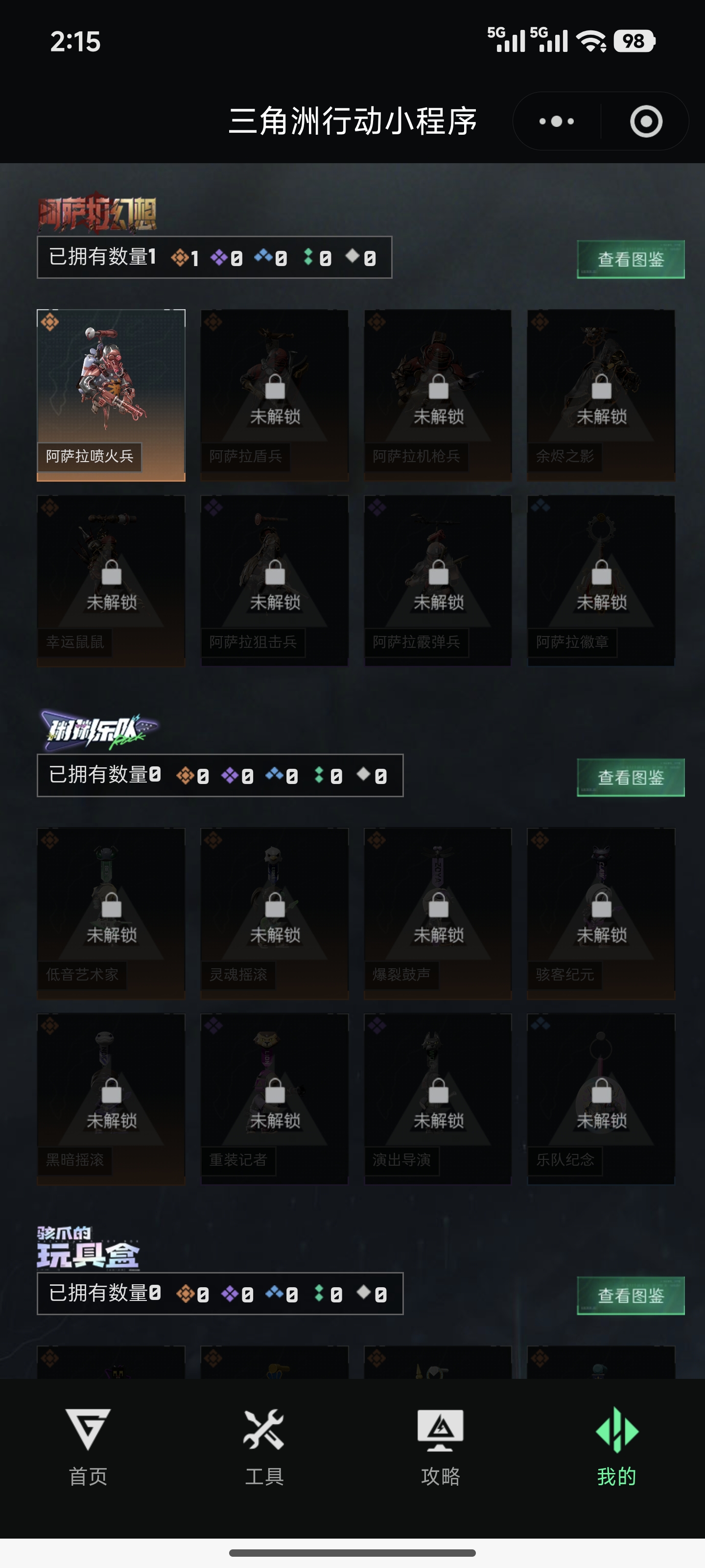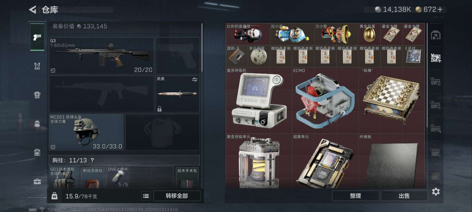 烽火段位铂金4 战场段位暂无段位 总资产124.3M 哈夫币1413W 干员6 挂饰19 近战1 枪械58 载具36