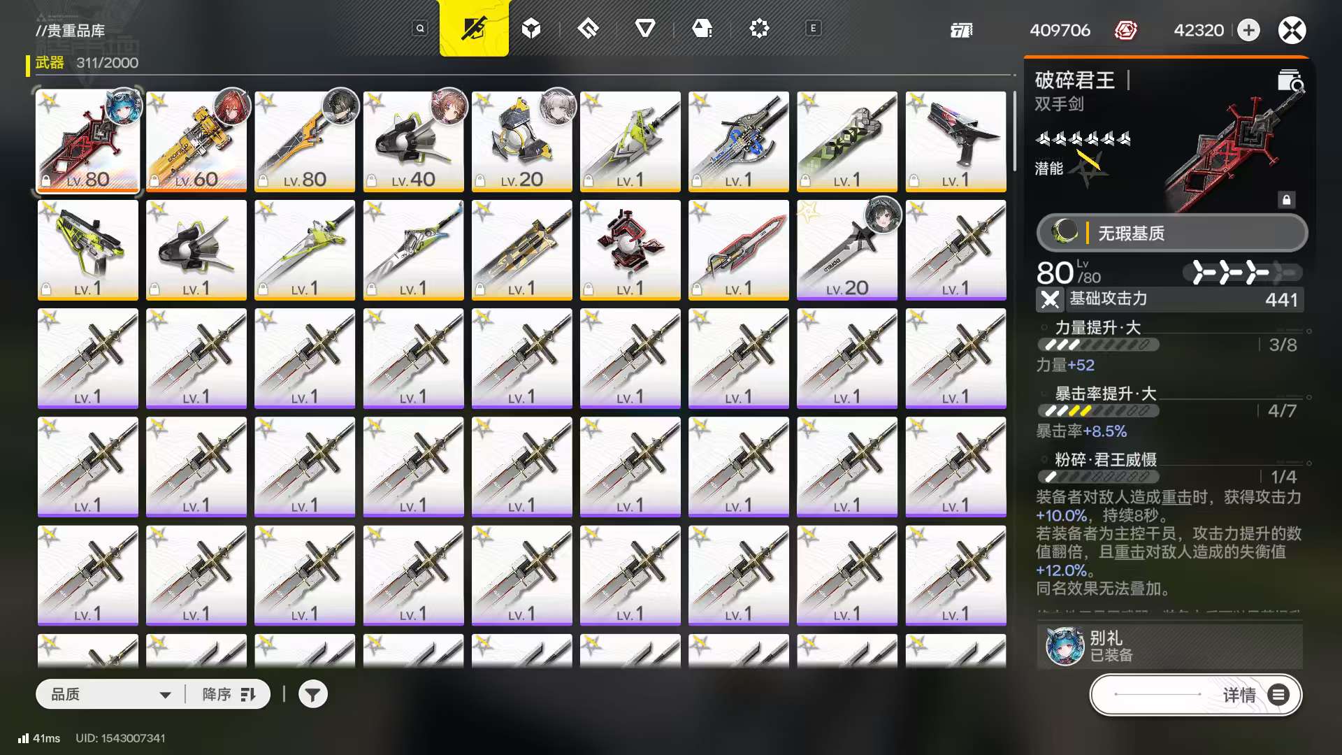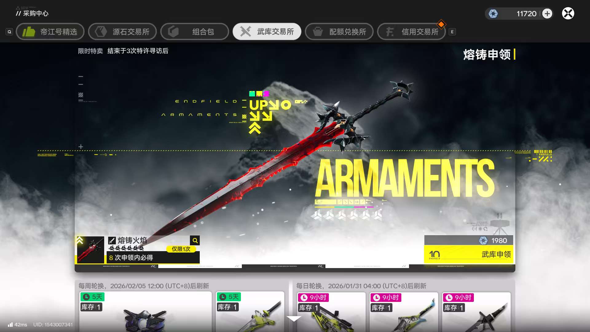 明日方舟终末地官服51级,四号谷地基建已毕业,歪别礼了,不想玩了,号上还有5万嵌晶玉,11000武器