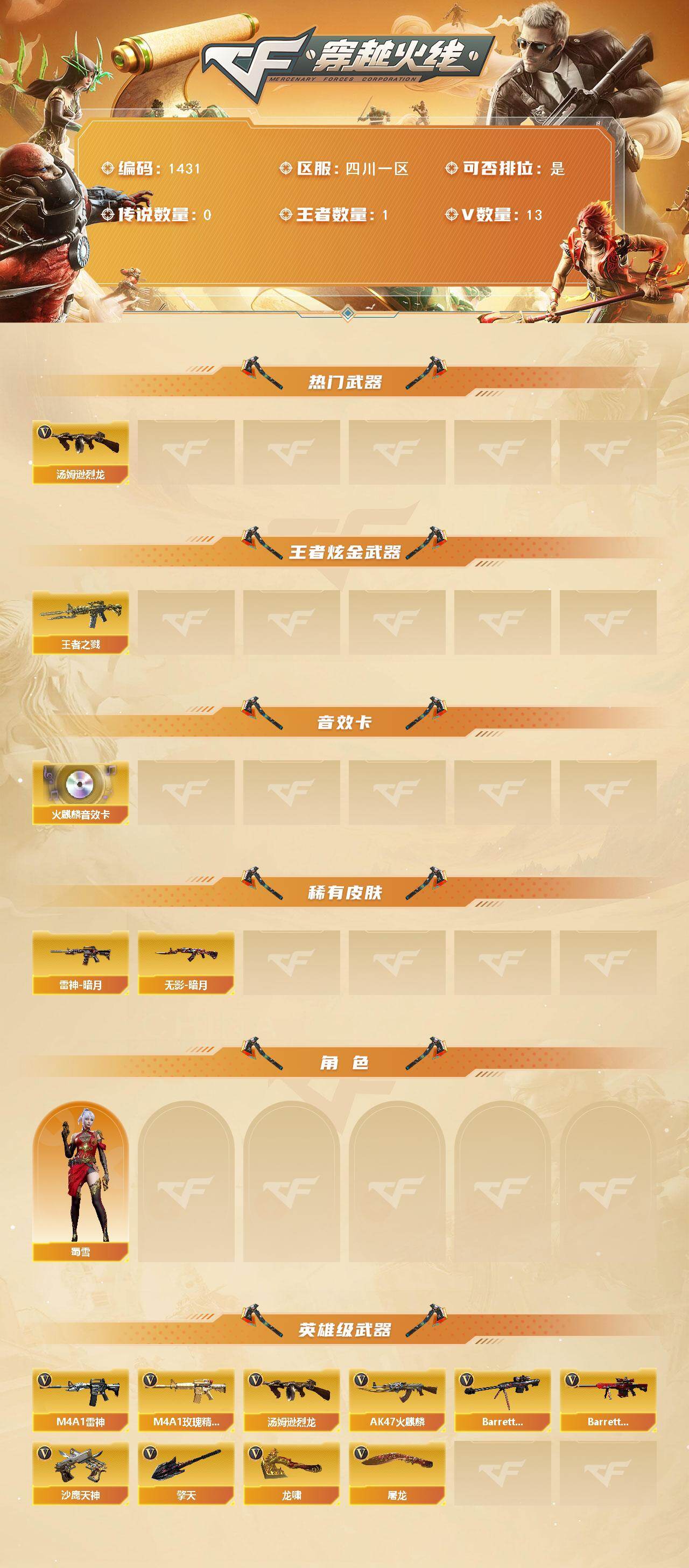 四川一区-13V-1王者武器数-0炫金武器数【热门武器】:汤姆逊-烈龙【王