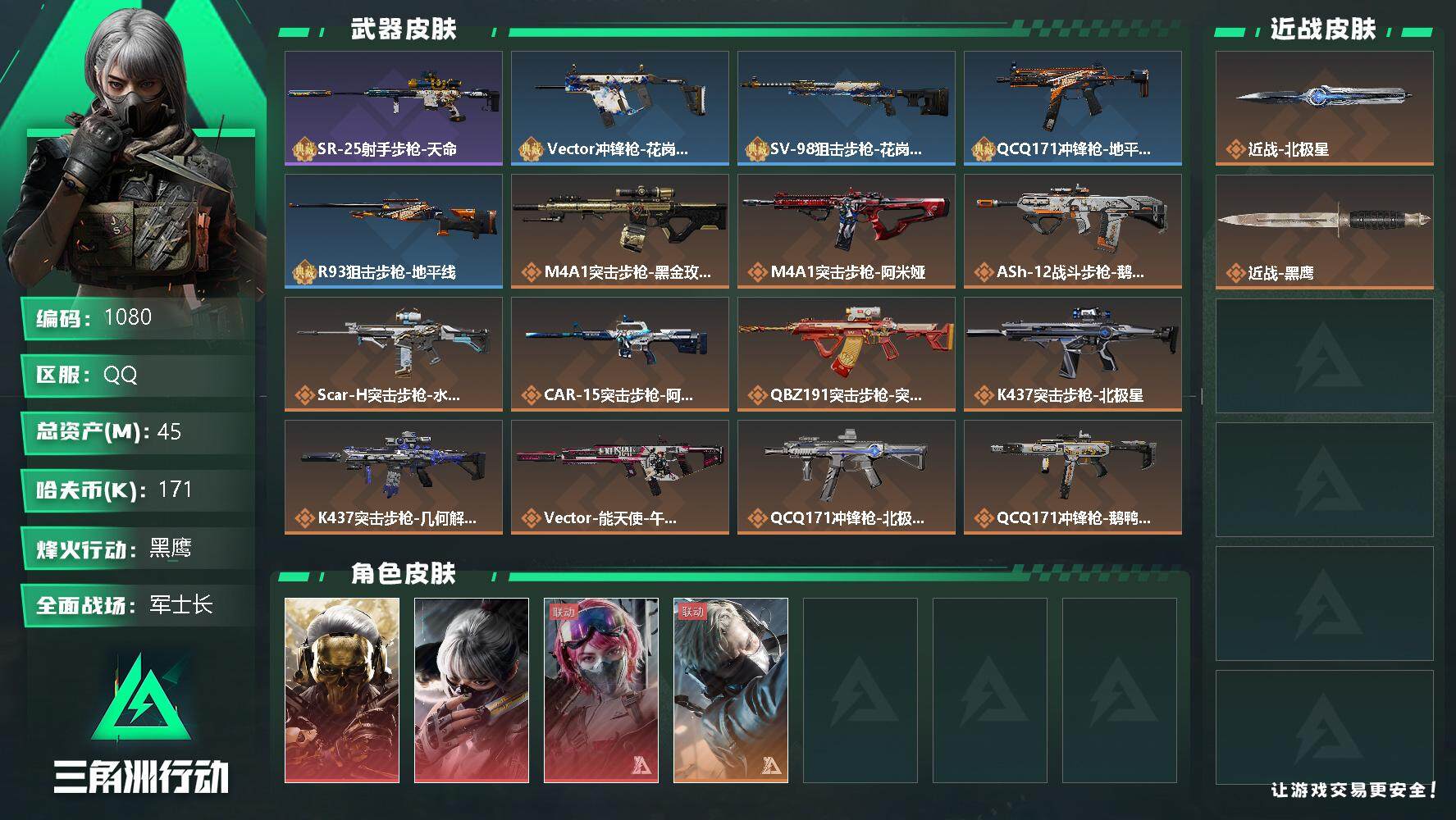 MSJ3389【4干员 北极星 蚀金玫瑰】三端互通-总价值272.22M-哈夫币76,481.6-烽火地带等级60-烽火地带段位铂金【干员皮肤】红狼-蚀金玫瑰 红狼-电锯惊魂 蜂医-送葬人·无题密令 深蓝-不破誓约【近战武器】黑鹰 北极星【枪皮】AKM突击步枪-黄铜 AKS-74U突击步枪-监察 K437突击步枪-凶兽 SCAR-H战斗步枪-旧工业 AK-12突击步枪-青纹 M4A1突击步枪-粉色涂装 M4A1突击步枪-高雅黑 M4A1突击步枪-海色 M4A1突击步枪-繁盛 M4A1突击步枪-阿