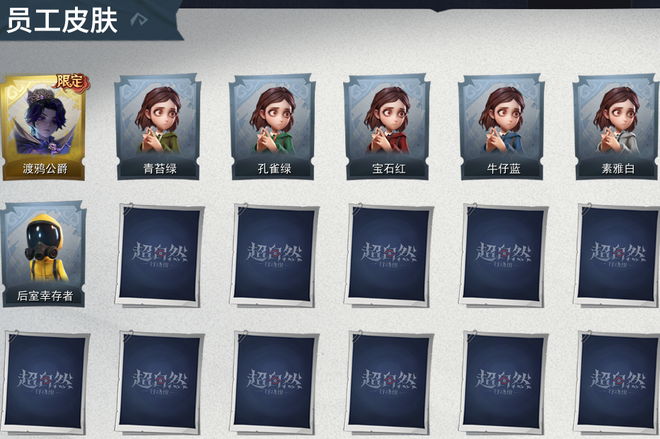 ZR265红皮:0,金皮:1,紫皮:0,道具皮:0,铲铲币:55w,累充:270金砖,服装:零-渡鸦公爵,员工:小黄、爱丽丝、零、逍遥、薇薇安,头饰:鱼头怪头套、烈焰红唇头套、火爆了头套、面具马头套、哈士奇头套、萨卡班甲鱼头套、嘻嘻头套、滑稽头套、呆滞头套、卑微头套、后室幸存者头套,动作:鸳鸯戏、刀马舞、举牌、抬手,赛季魔盒:普通魔盒