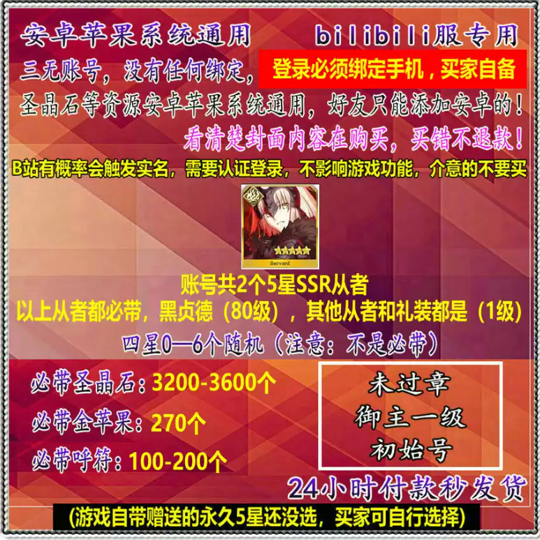 未过章★必带 黑贞德+从者或礼装 3000+石头★200+金苹果★序章一级★