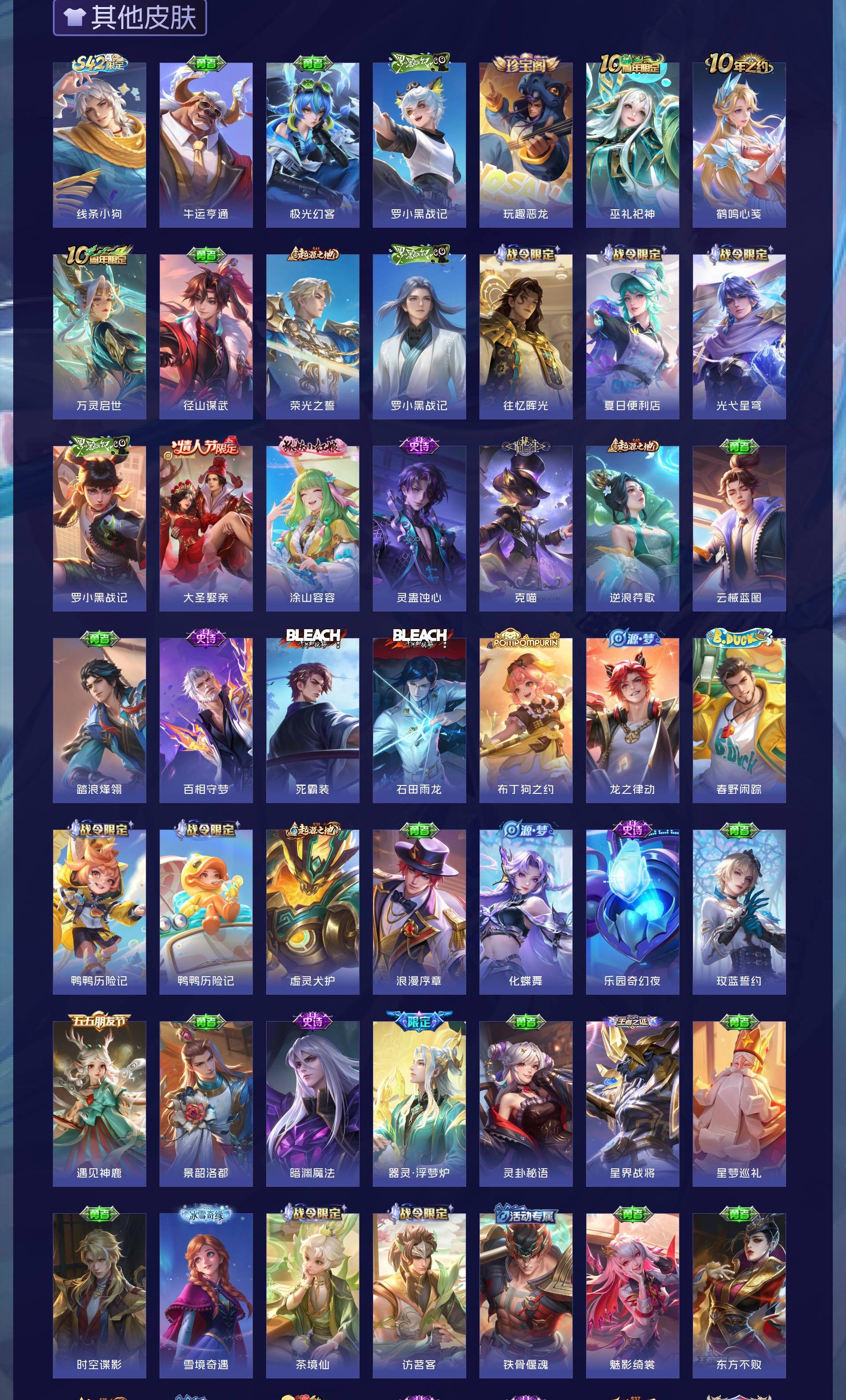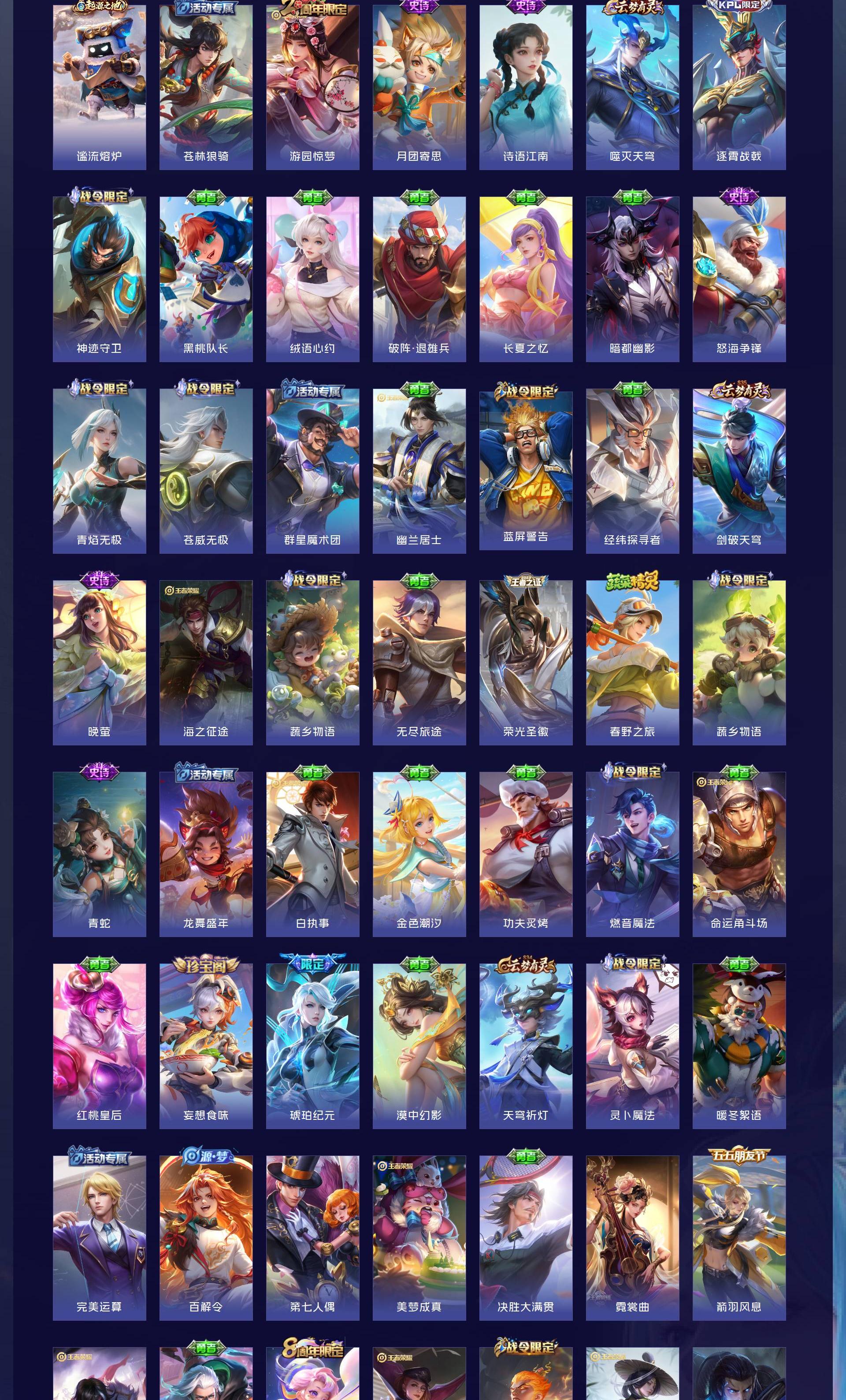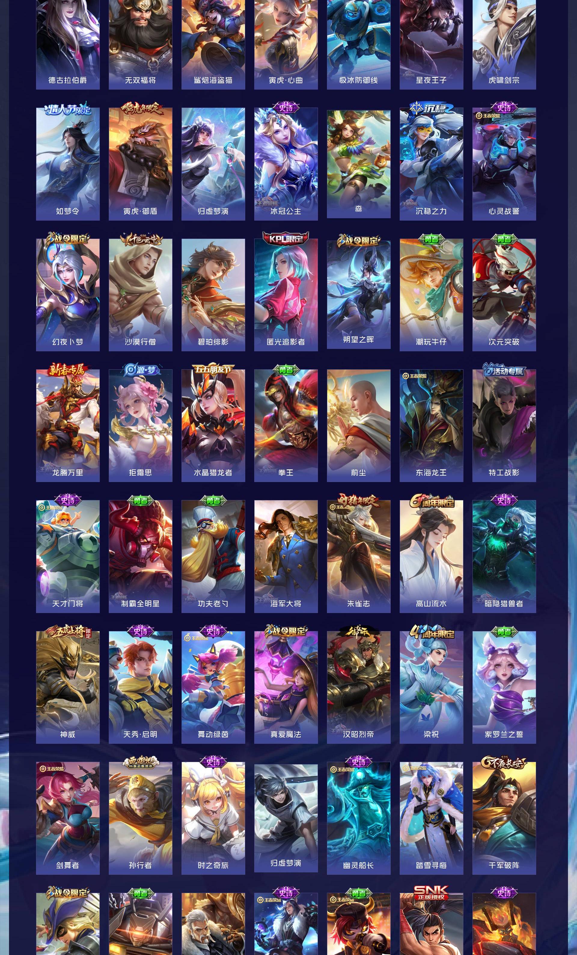 V9 皮肤424 英雄127 至尊星耀 荣耀典藏5 传说26 其他皮肤397