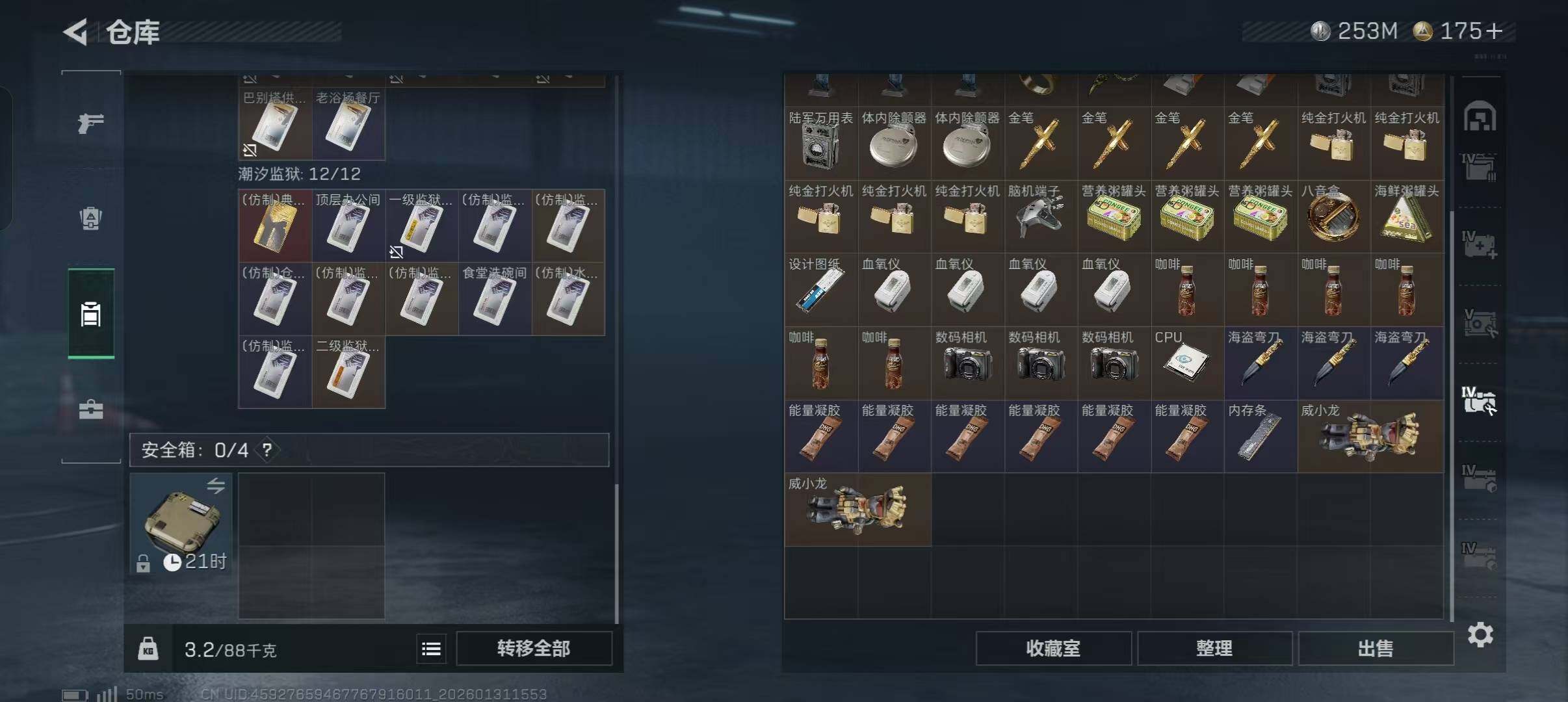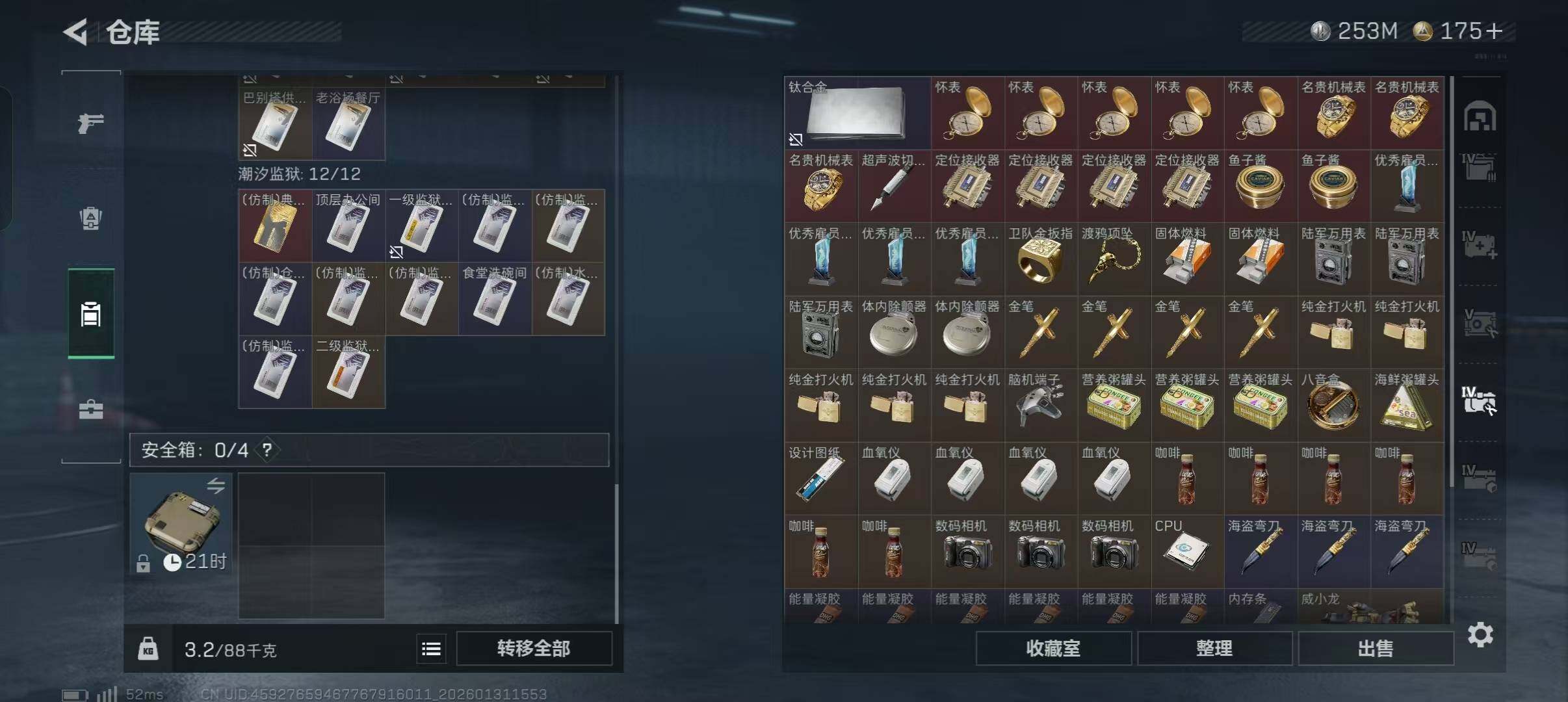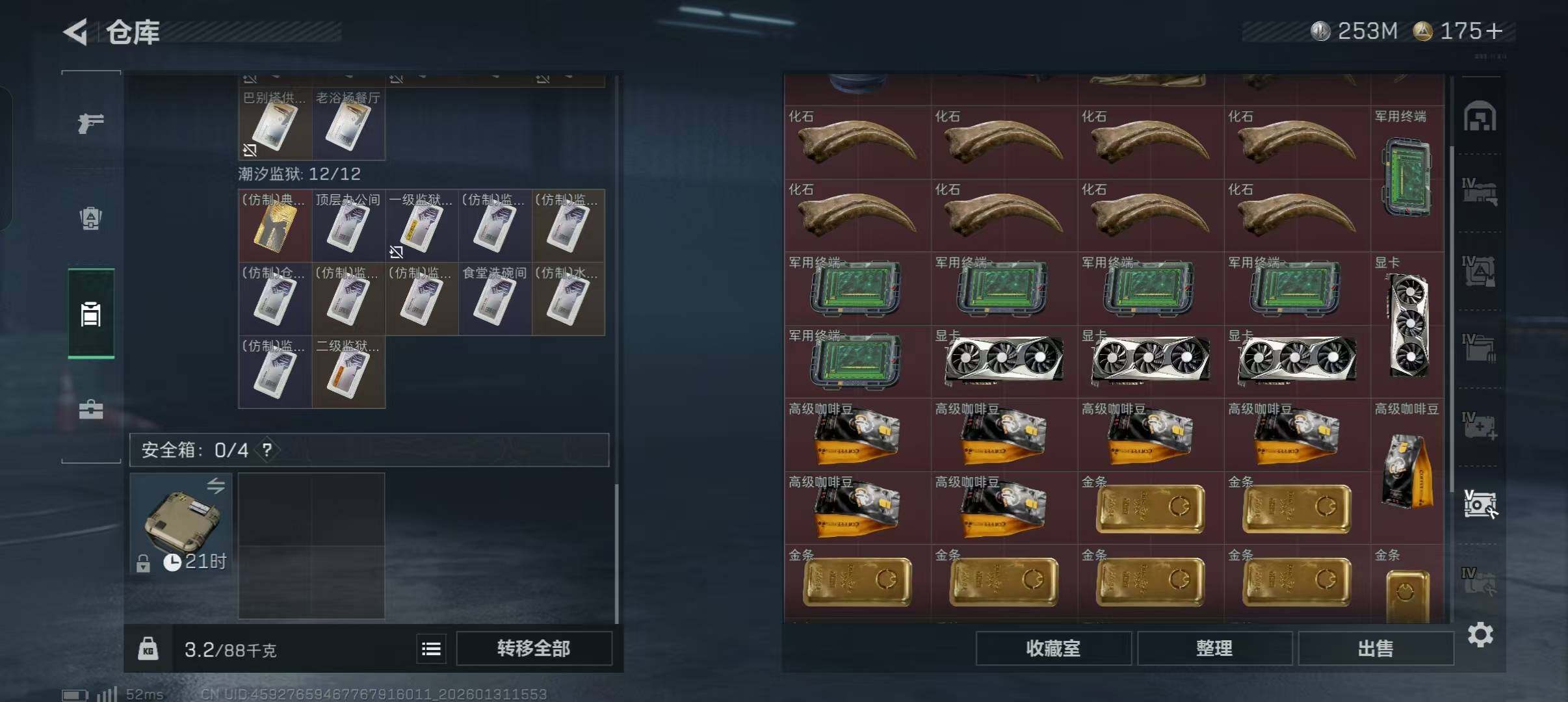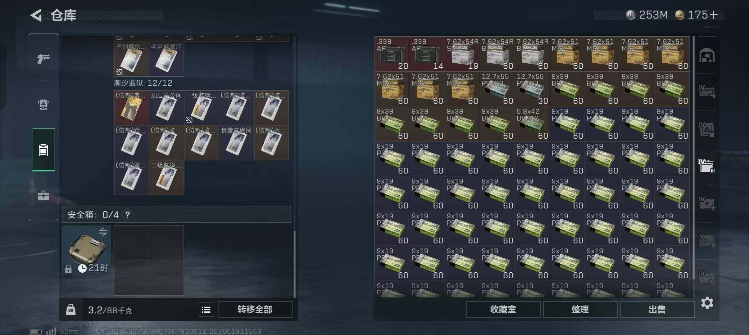 【SJZ3969】总资产(M):616M/哈夫币(K):253234K/哈夫币(K):253234K/传说枪皮数:16/全面战场等级:1_段位:无段位/烽火地带等级:60_段位:黄金/骇爪-维什戴尔/红狼-电锯惊魂/近战-黑鹰/M4A1突击步枪-阿米娅/ASh-12战斗步枪-鹅鸭杀/AK-12突击步枪-特斯拉线圈/SCAR-H战斗步枪-启航/G3战斗步枪-骑士/CAR-15突击步枪-阿米娅/腾龙突击步枪-捞点薯条/KC17突击步枪-电锯惊魂/UZI冲锋枪-特斯拉线圈/SR-3M紧凑突击步枪-特斯